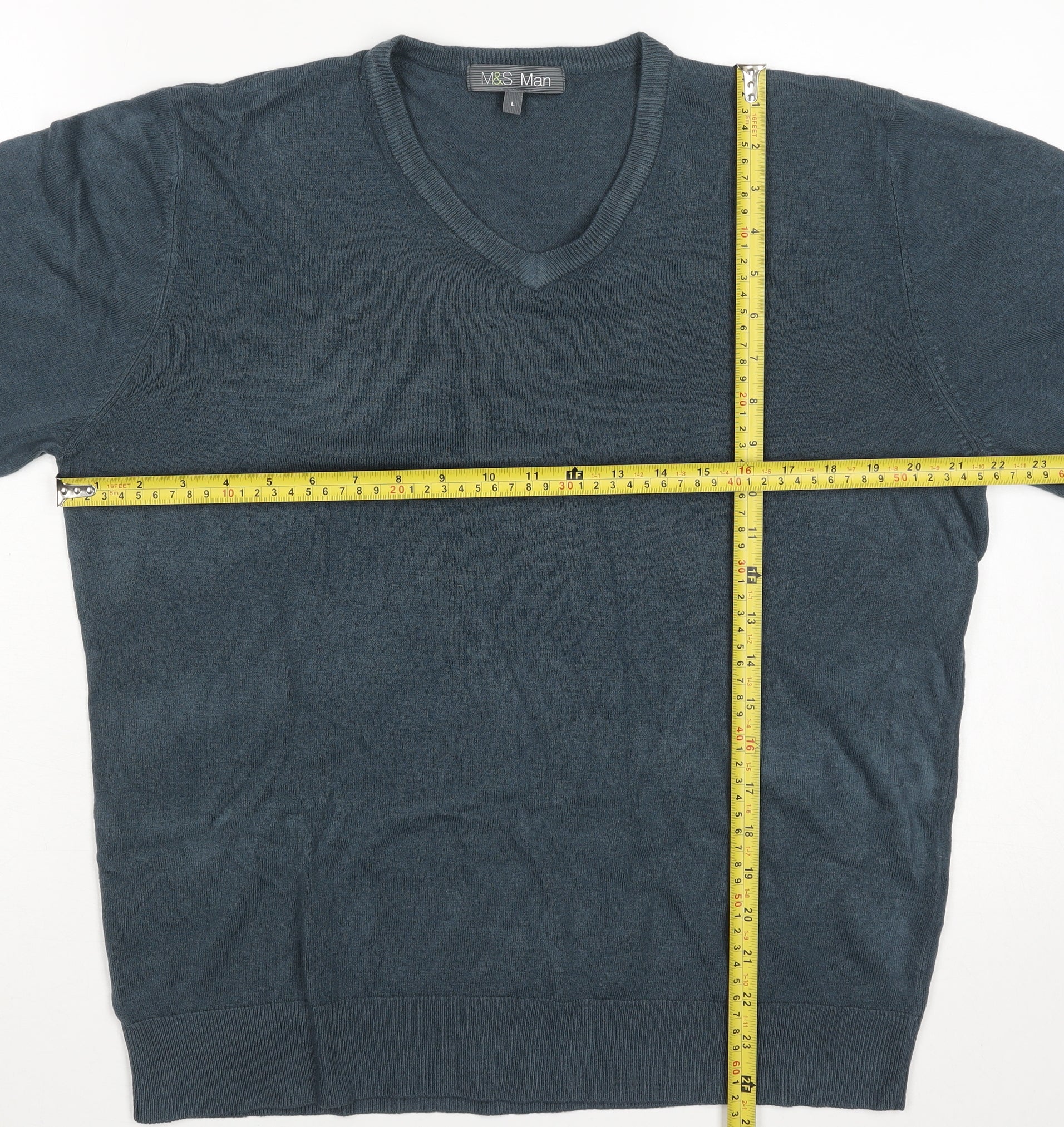 Marks and Spencer Mens Blue Acrylic V-Neck Jumper Size L