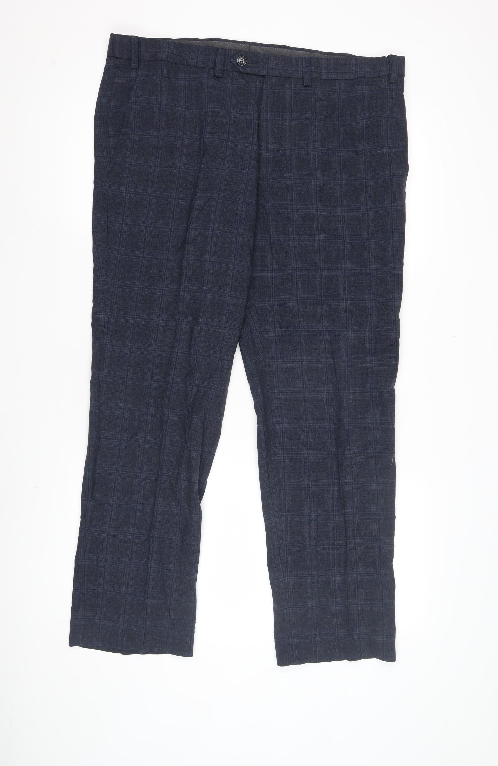 Marks and Spencer Men's Blue Check Trousers 36 in