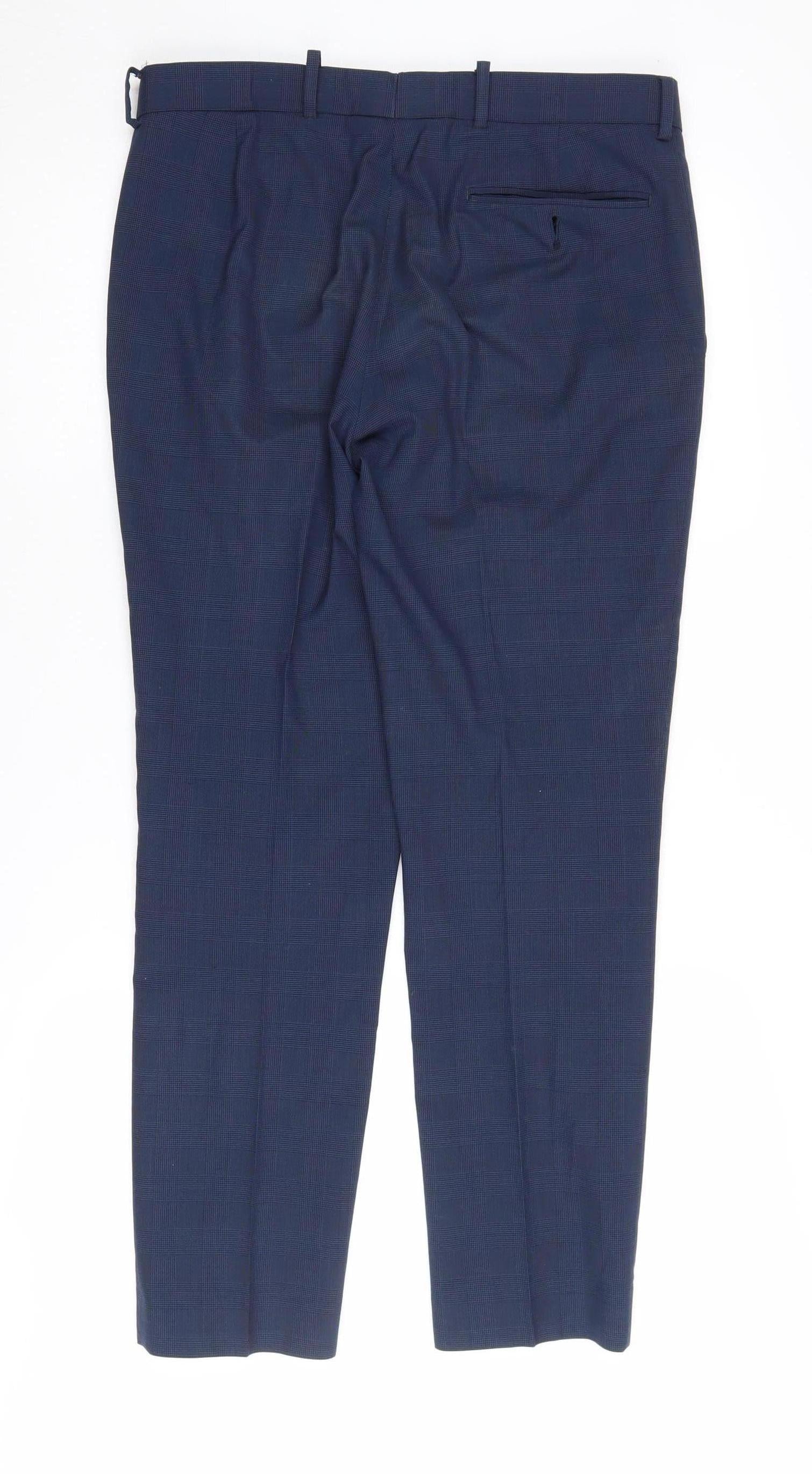 Marks and Spencer Men's Blue Check Trousers Size 32