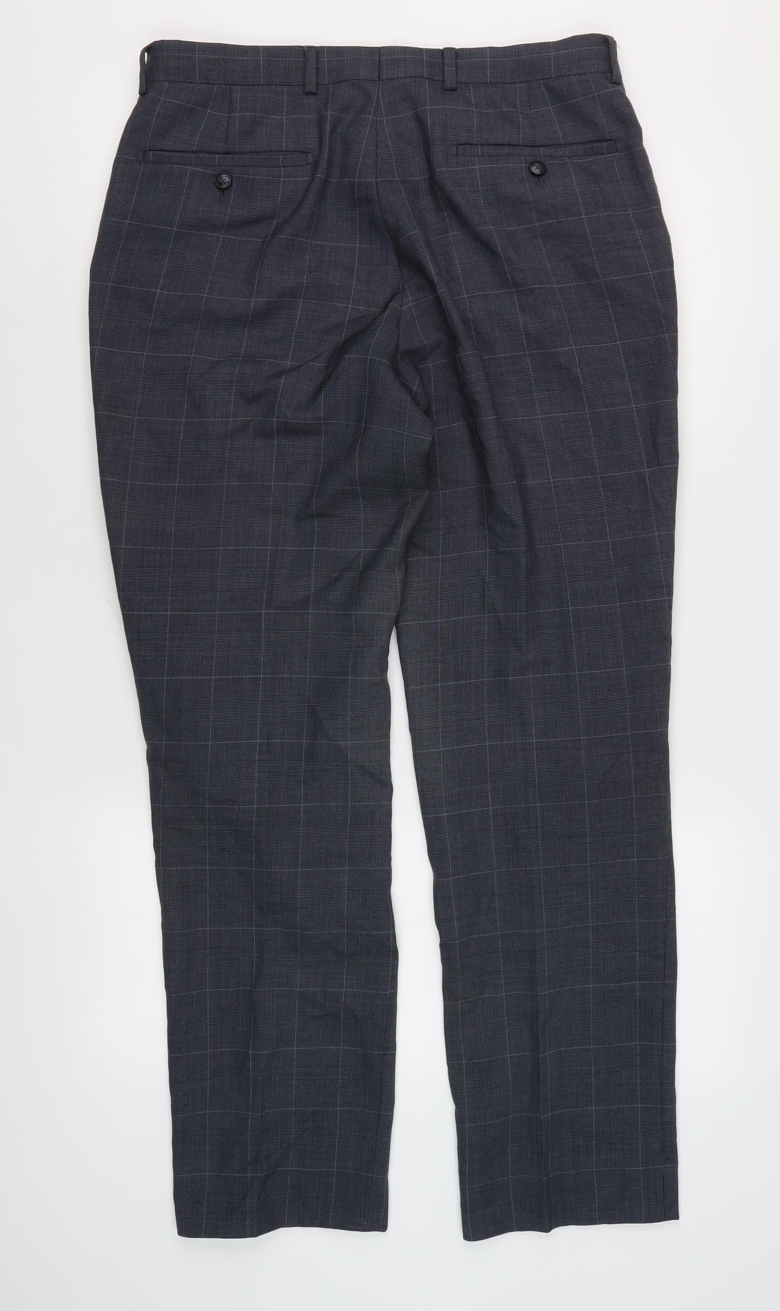 Marks and Spencer Men's Blue Check Trousers, Size 32
