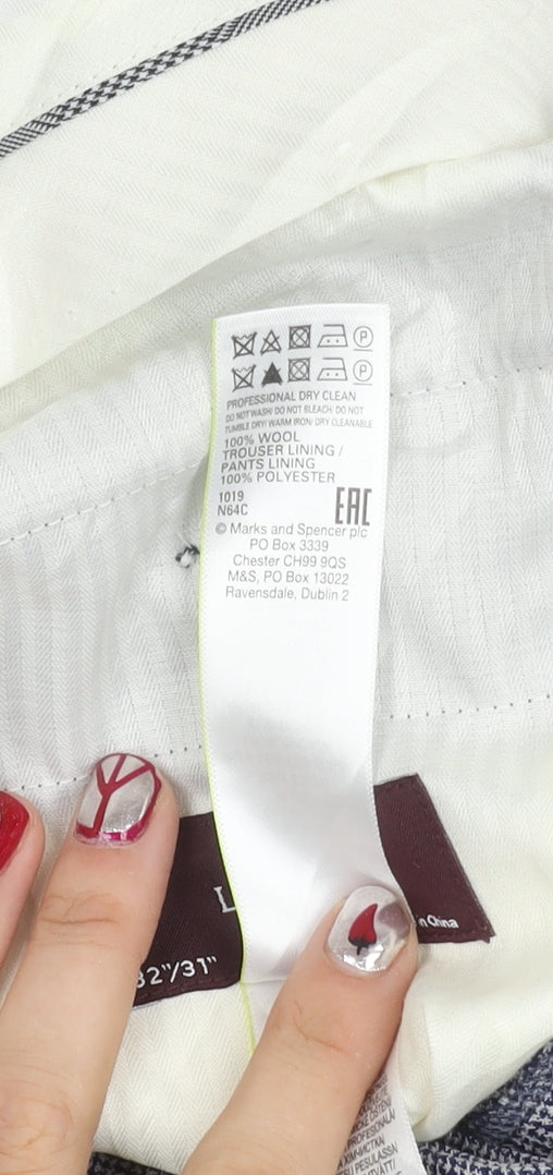 Marks and Spencer Men's Blue Check Wool Dress Pants 32x31 Slim