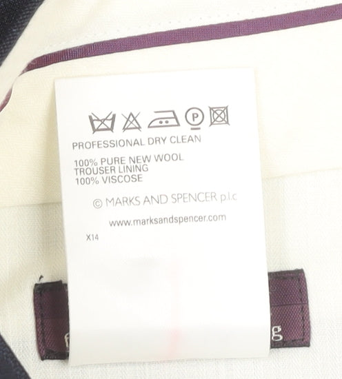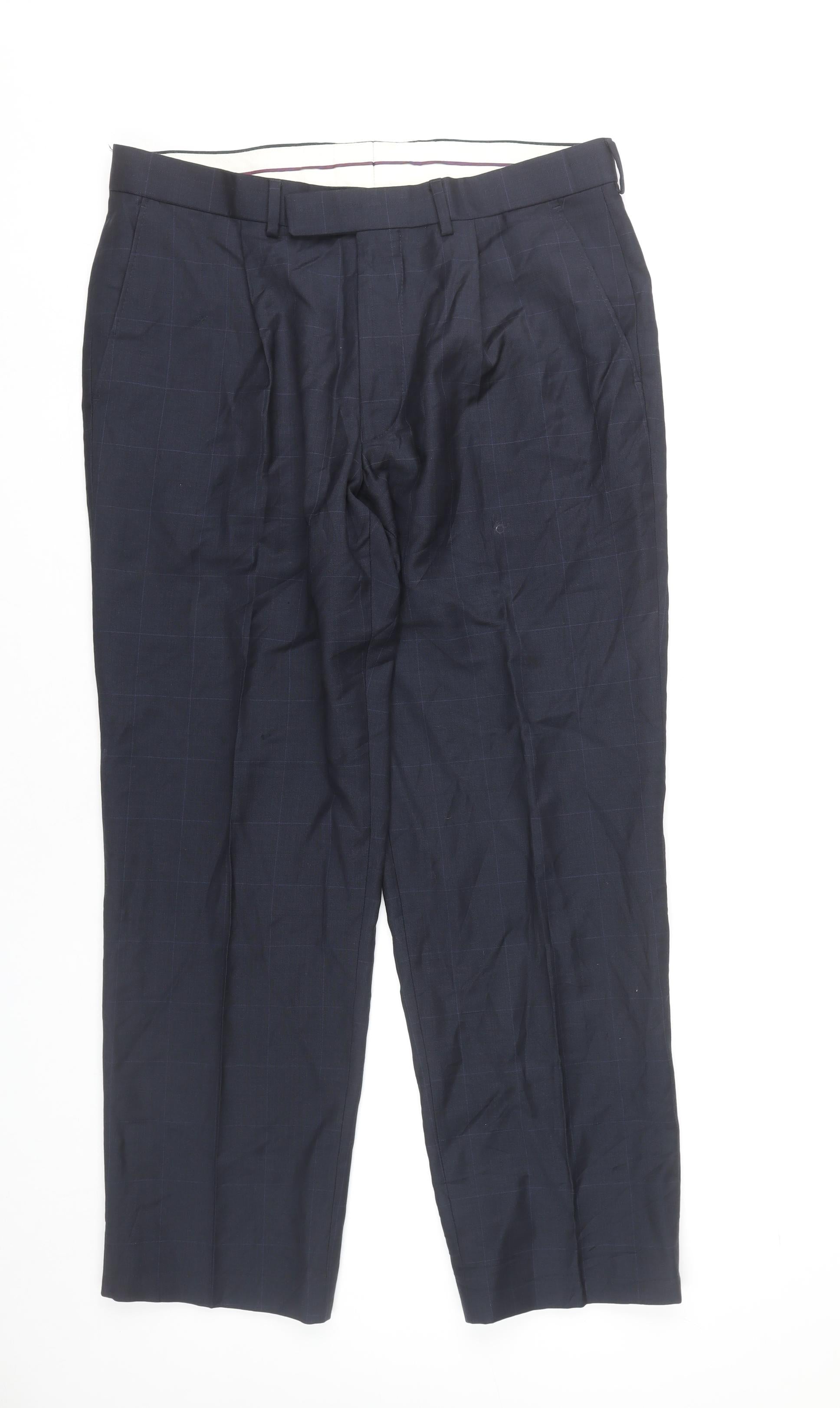 Marks and Spencer Mens Blue Checked Wool Dress Pants 34W 29L