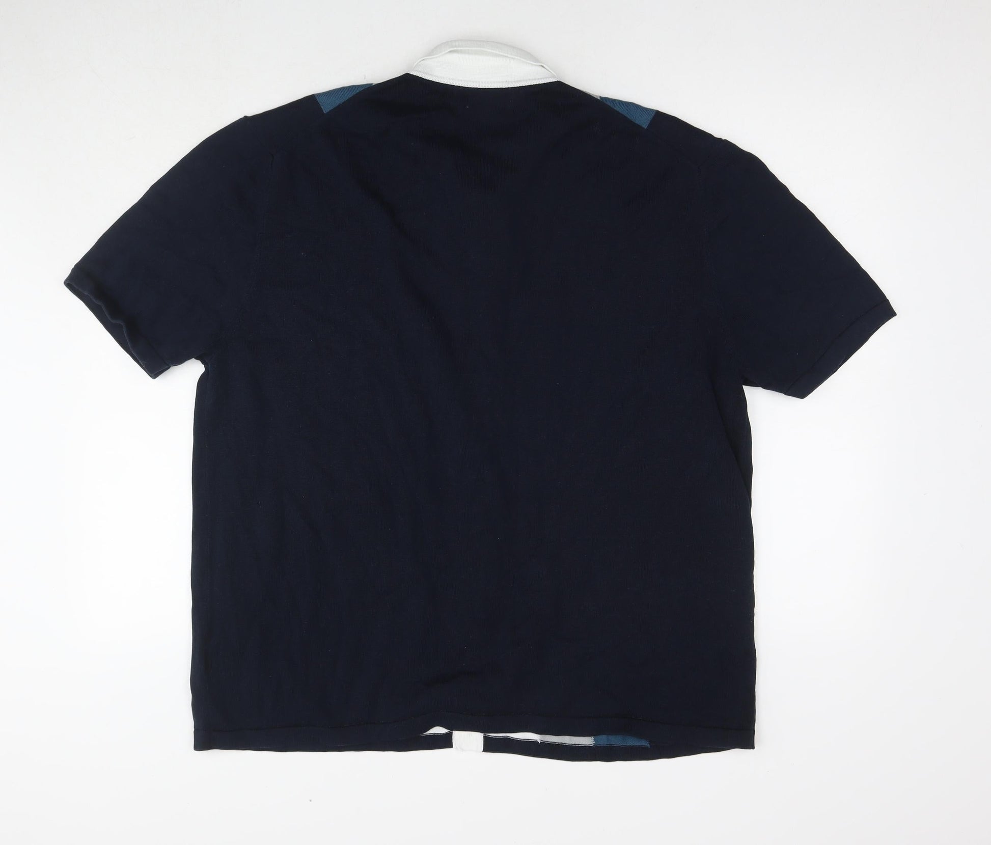 Marks and Spencer Mens Blue Collared Striped Cotton Cardigan Jumper Size 2XL Short Sleeve