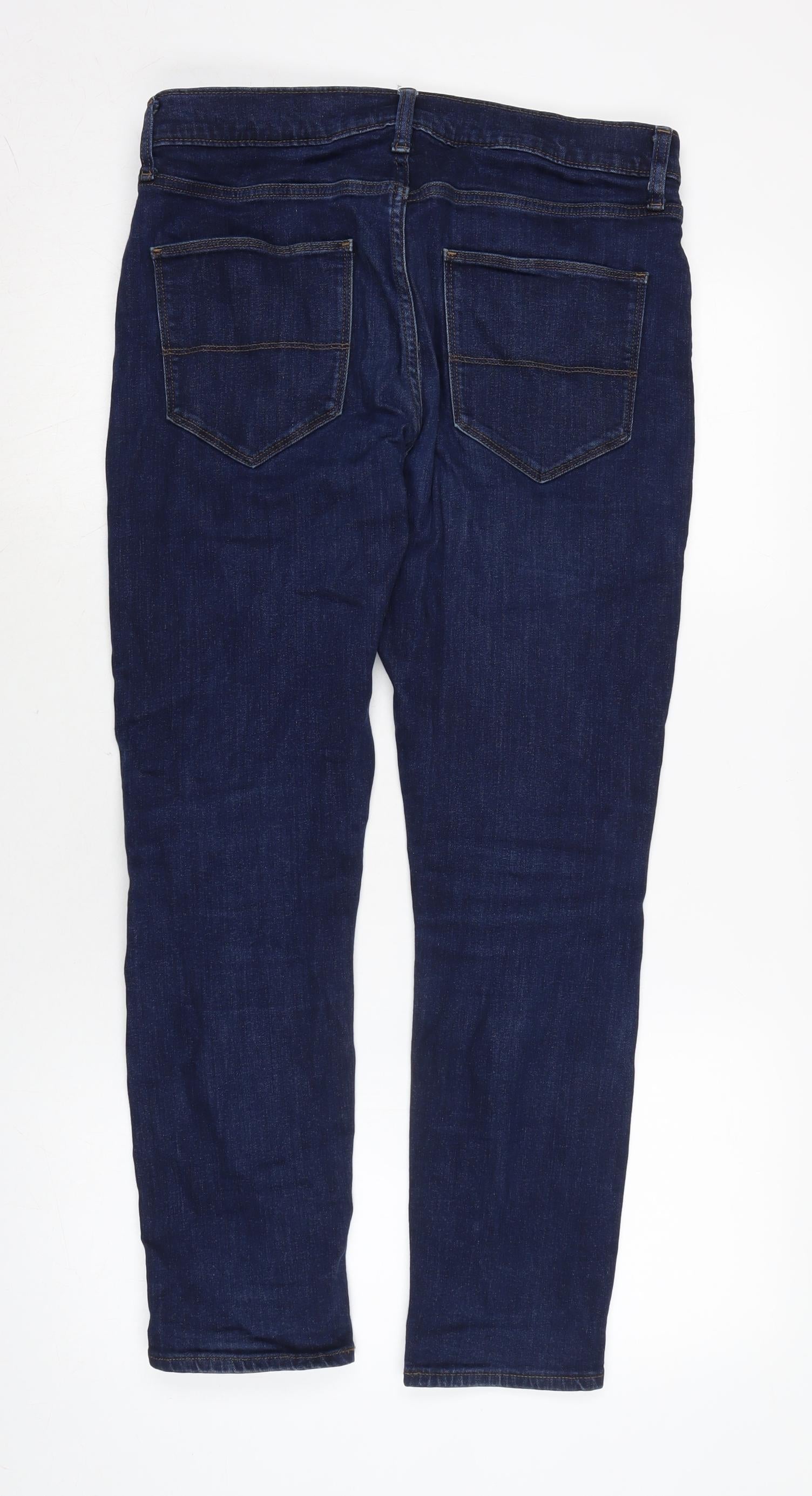 Marks and Spencer Mens Blue Cotton Blend Straight Jeans Size 30 in L25 in Slim Zip