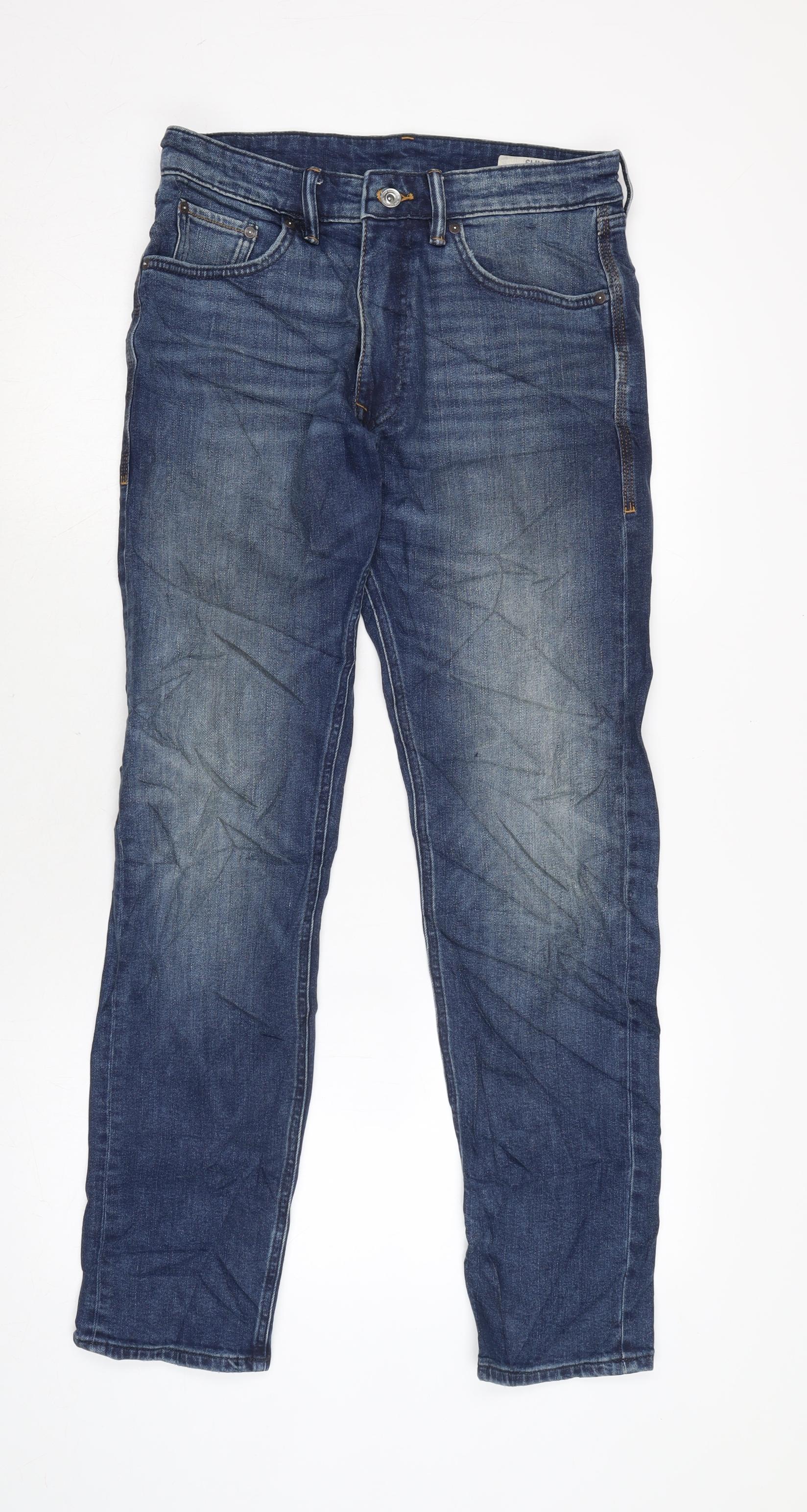 Marks and Spencer Mens Blue Cotton Blend Straight Jeans Size 30 in L31 in Regular Zip