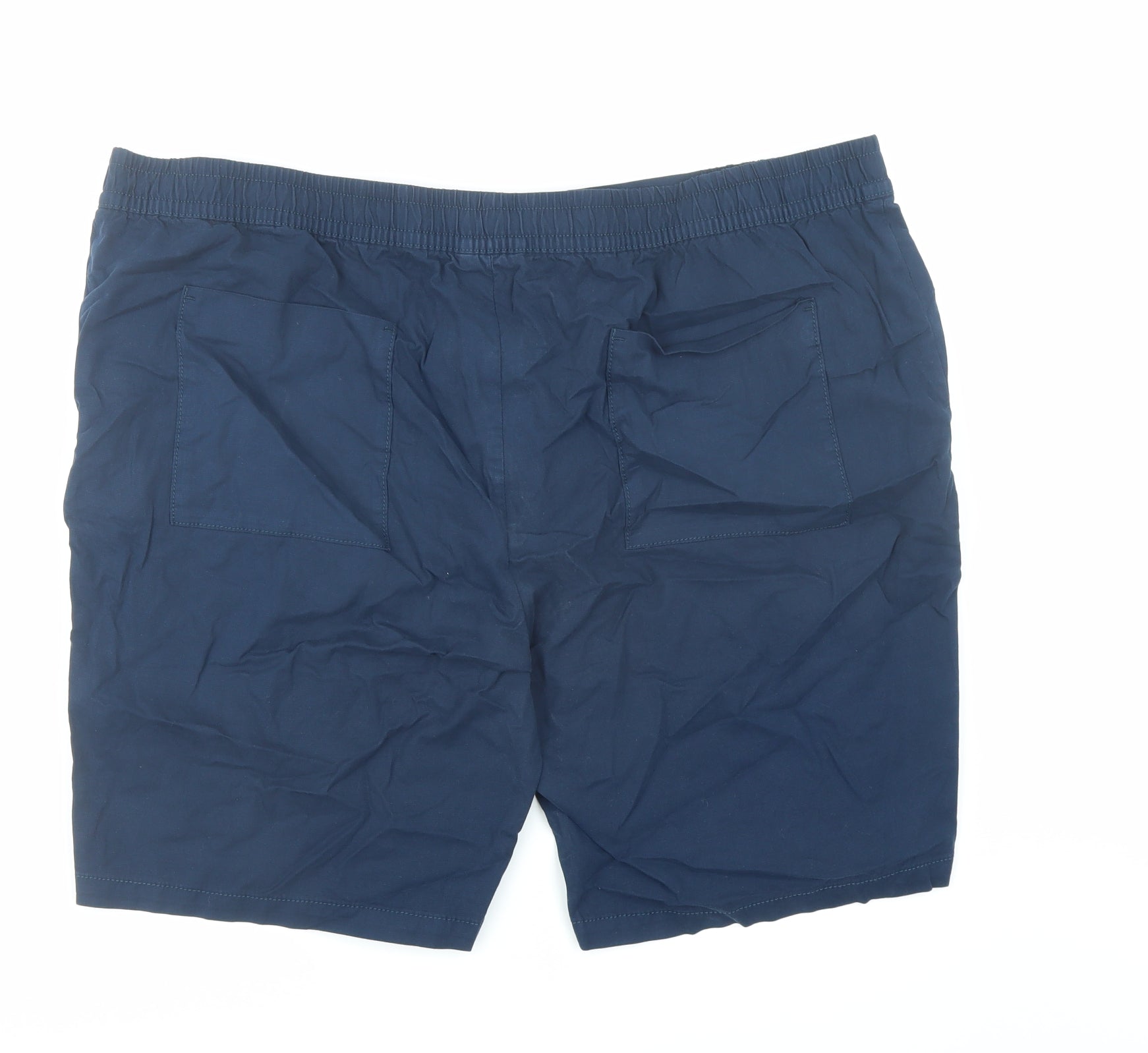 Marks and Spencer Mens Blue Cotton Chino Shorts Size 2XL L9 in Regular Zip - Elasticated Waist Pockets