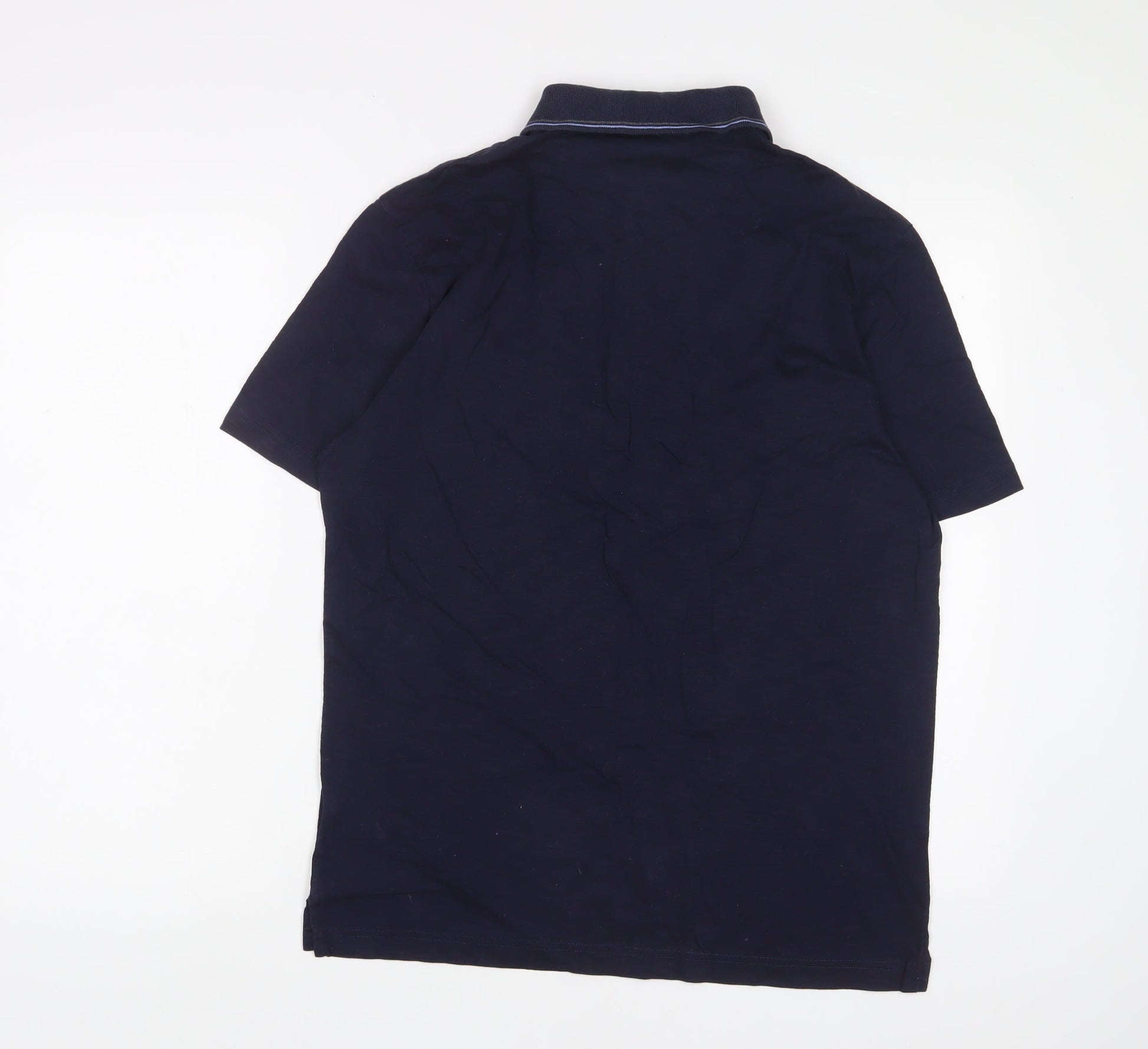 Marks and Spencer Mens Blue Cotton Polo Size M Collared Button