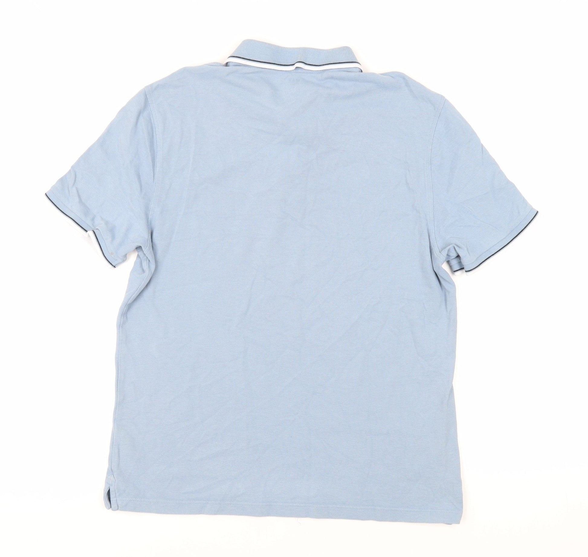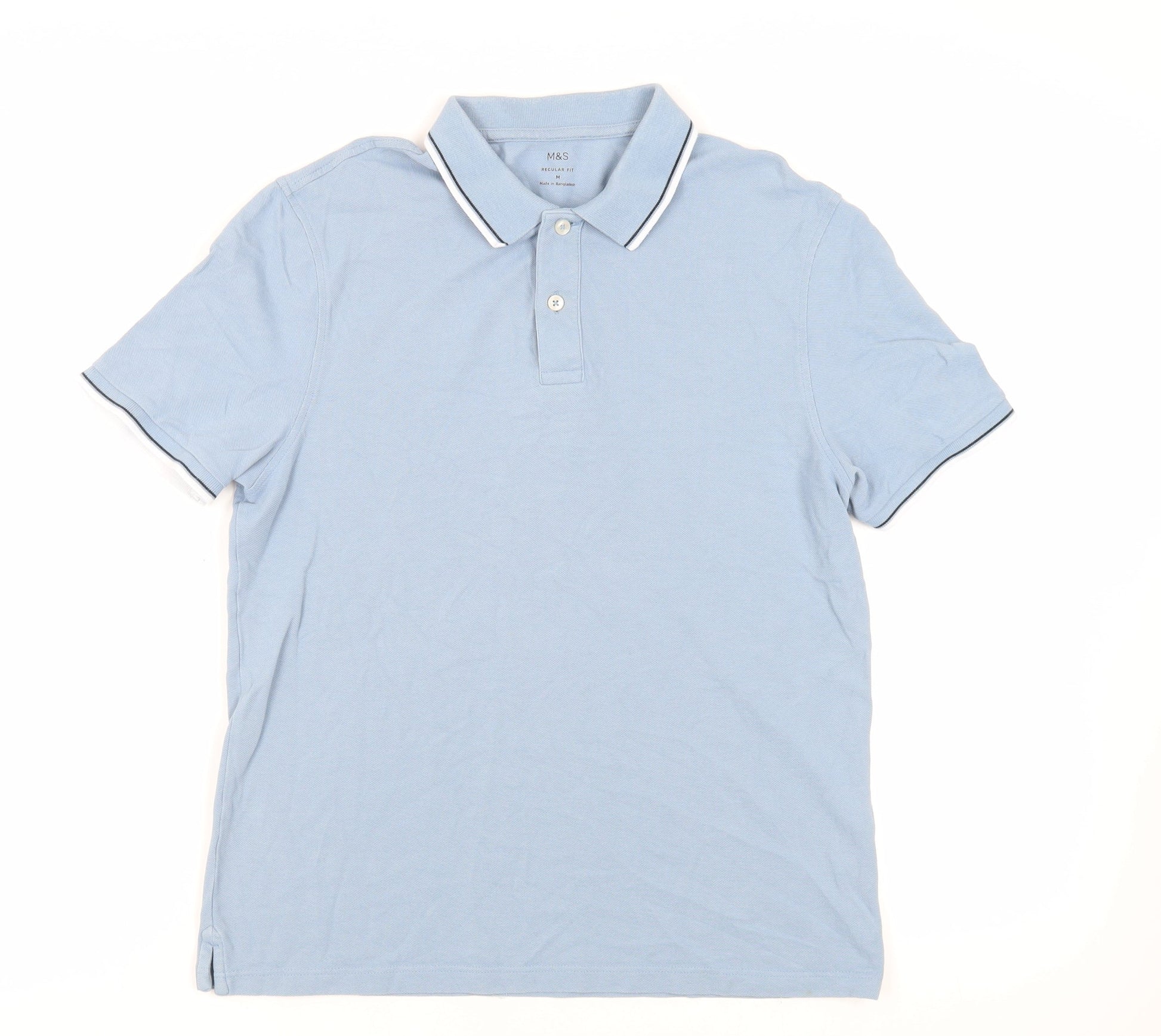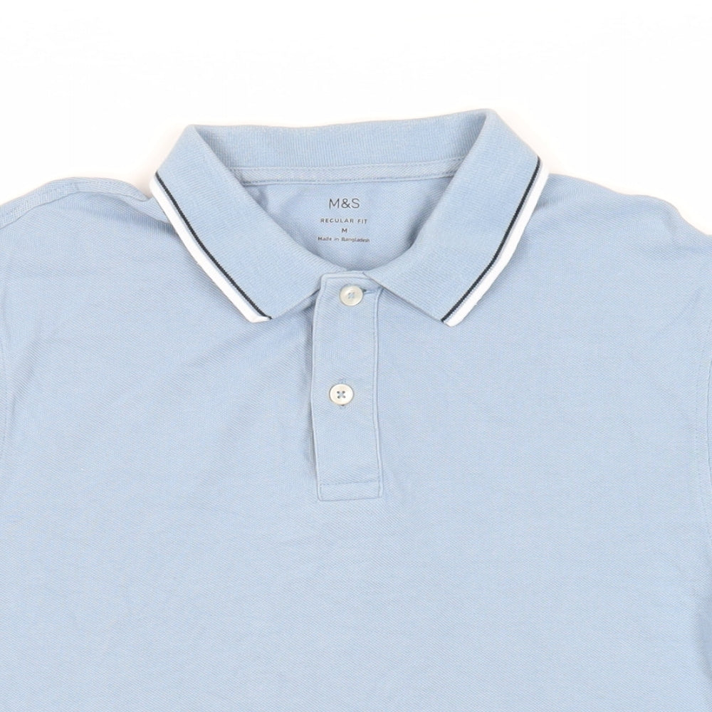 Marks and Spencer Mens Blue Cotton Polo Size M Collared Button