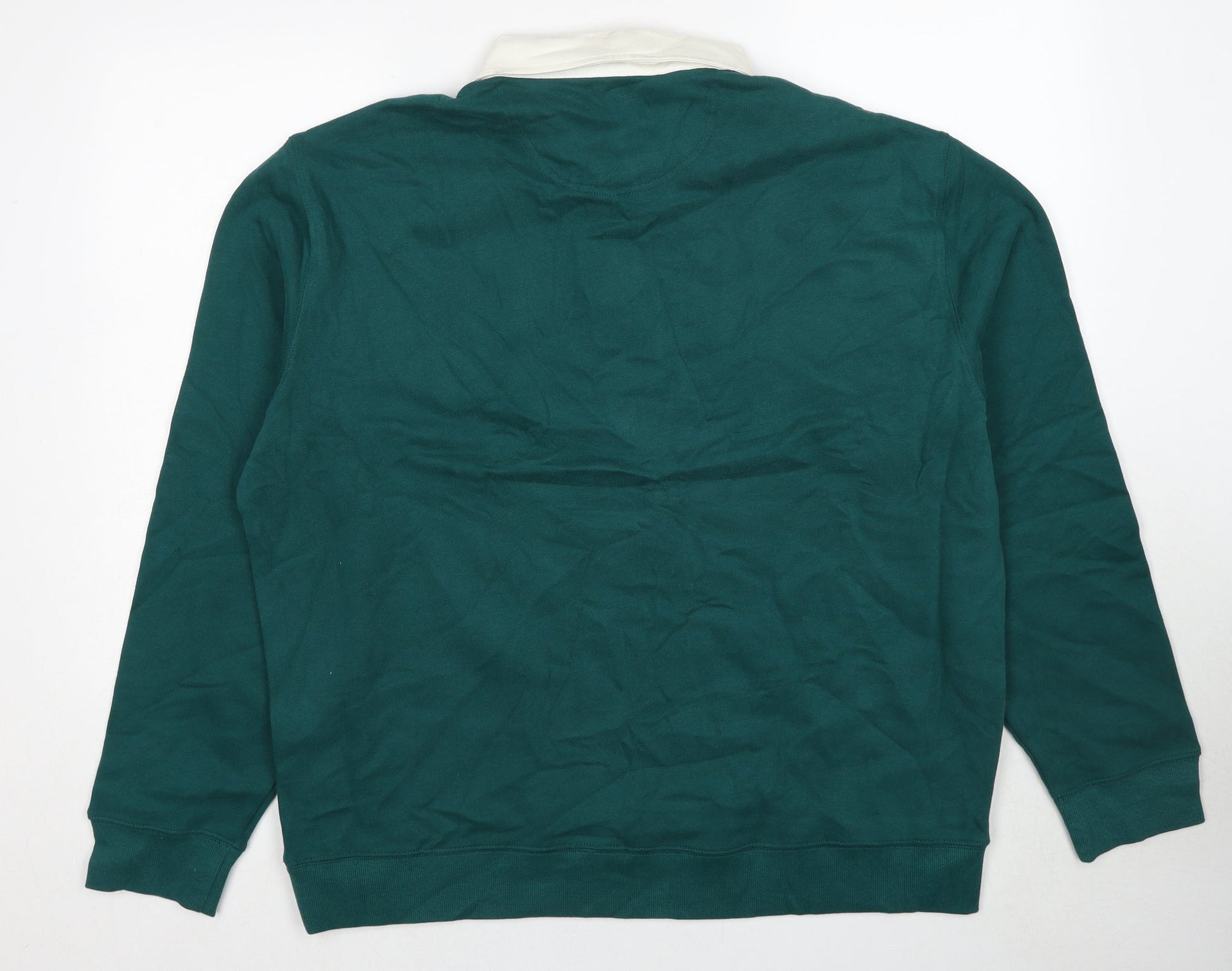 Marks and Spencer Mens Blue Cotton Polo Size XL Collared Button