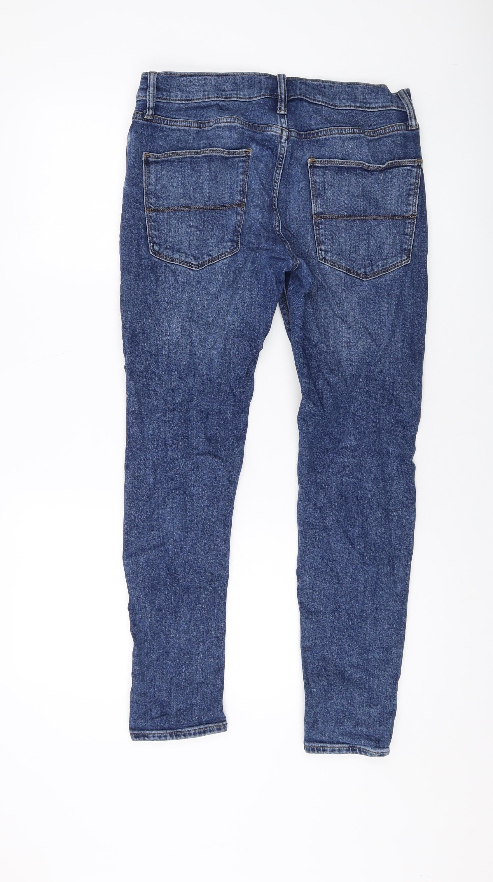 Marks and Spencer Mens Blue Cotton Skinny Jeans Size 30 in L29 in Regular Button