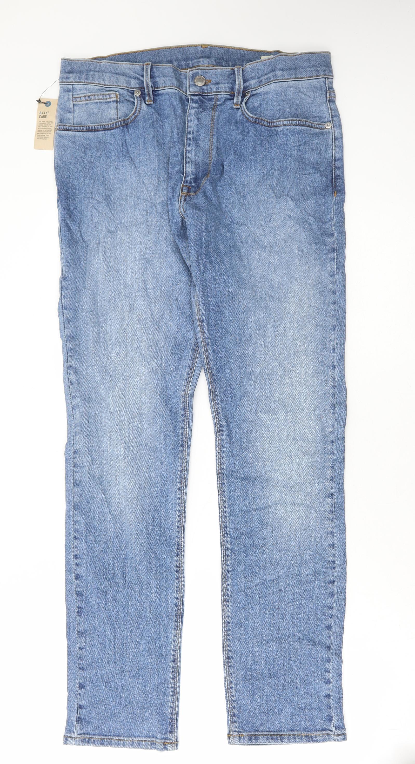 Marks and Spencer Mens Blue Cotton Skinny Jeans Size 30 in L31 in Regular Button