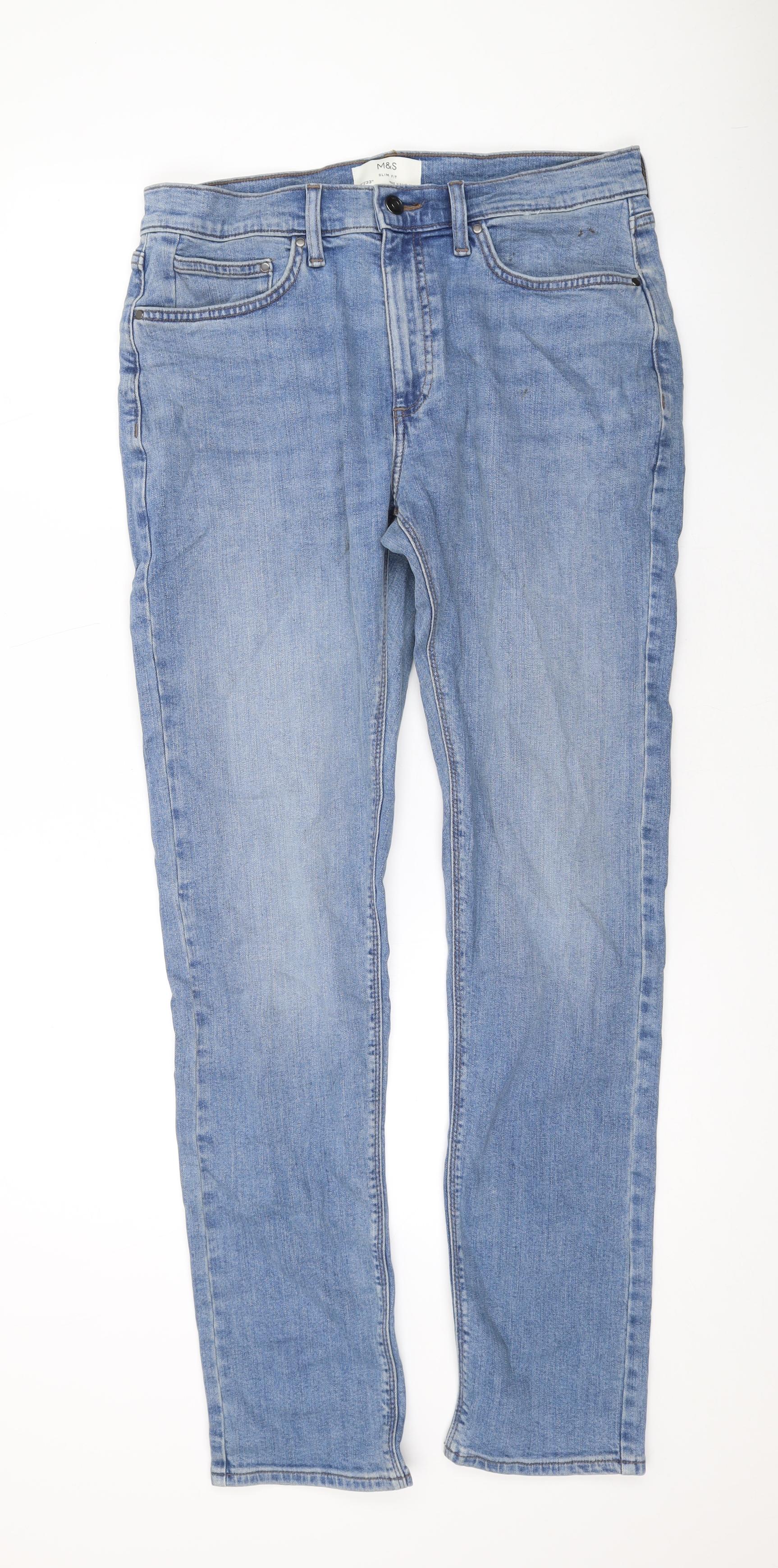 Marks and Spencer Mens Blue Cotton Skinny Jeans Size 32 in L32 in Regular Zip