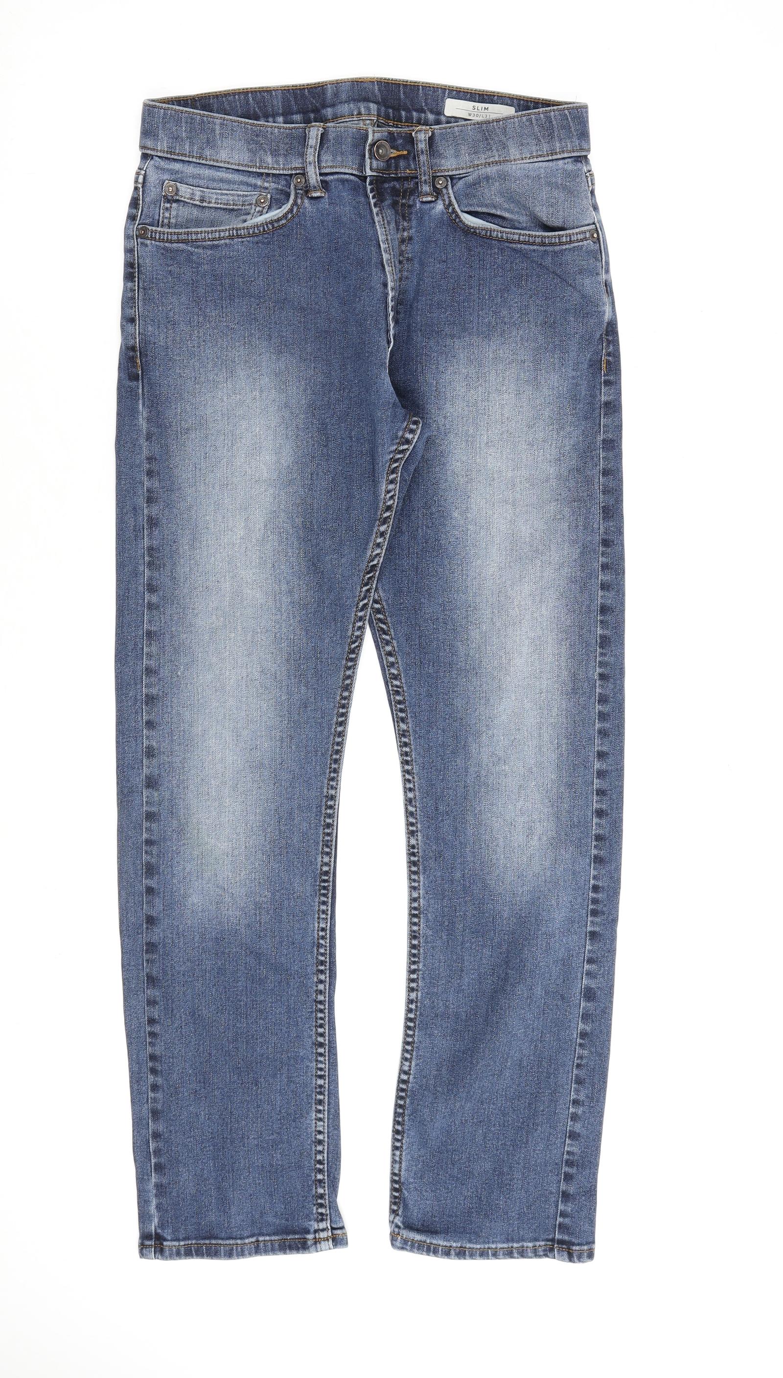 Marks and Spencer Mens Blue Cotton Straight Jeans Size 30 in L31 in Slim Zip