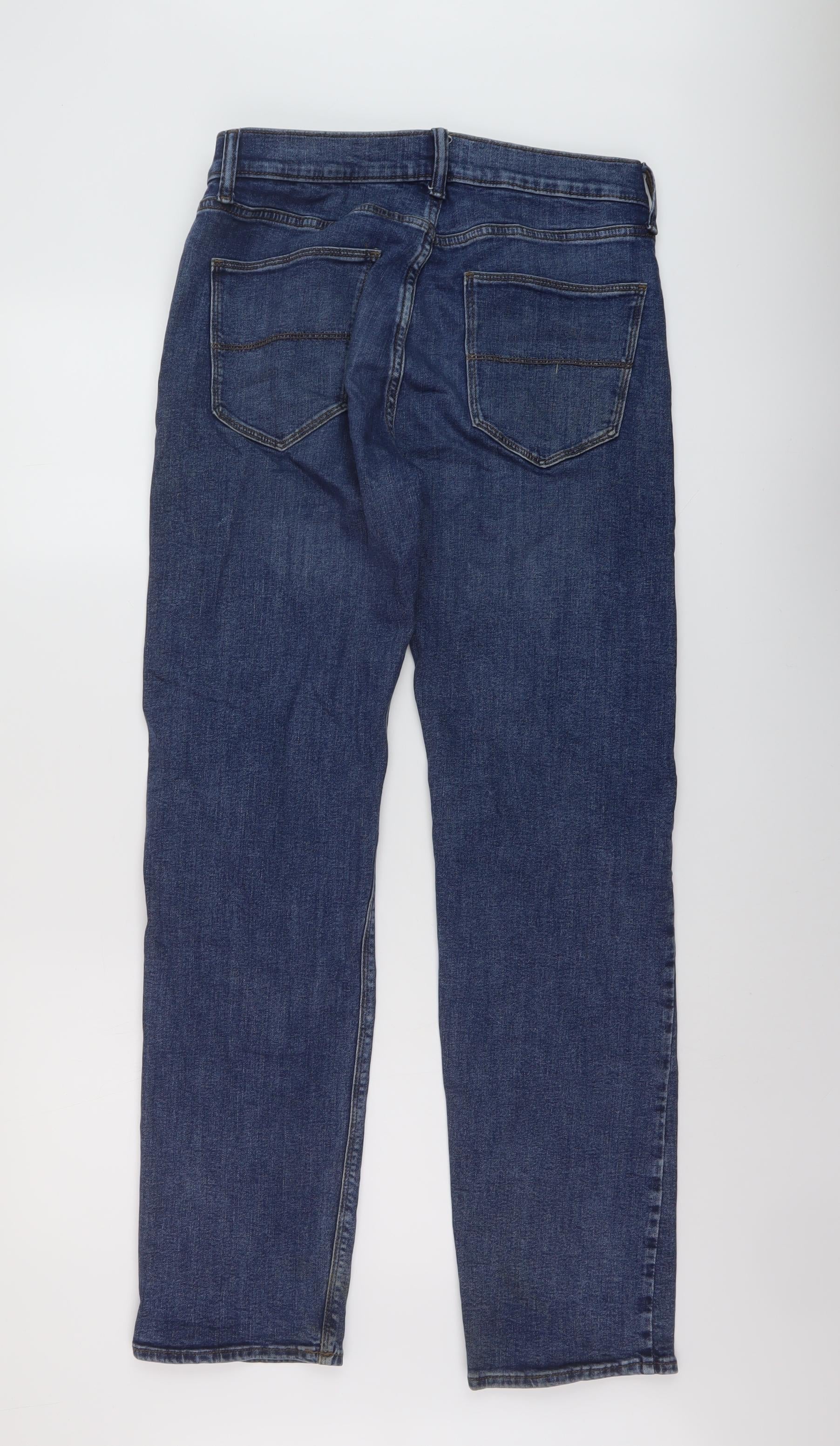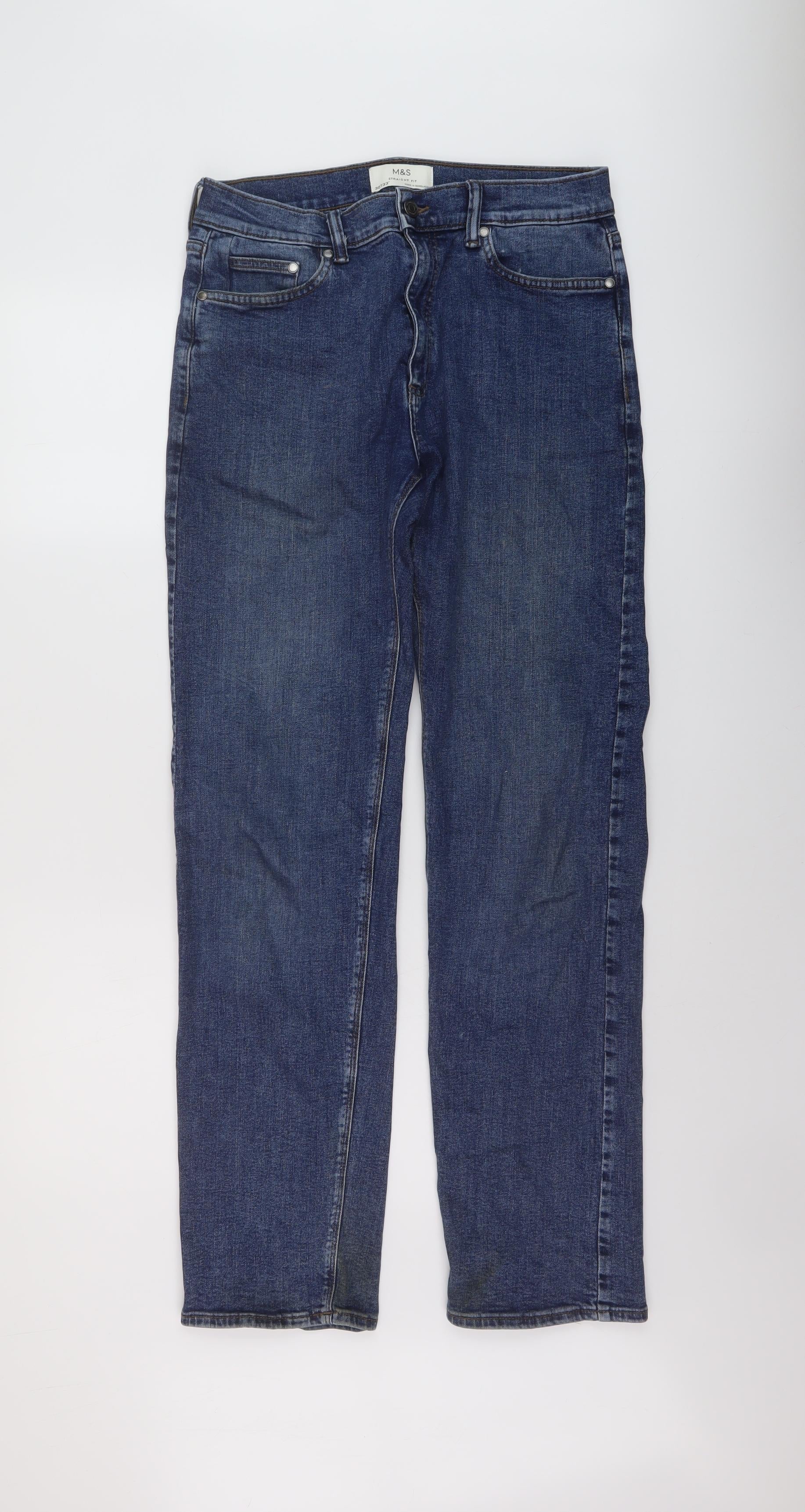 Marks and Spencer Mens Blue Cotton Straight Jeans Size 30 in L33 in Regular Button