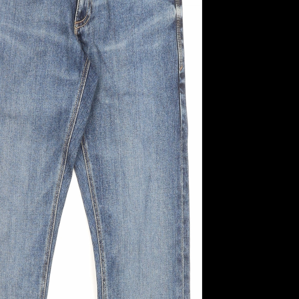 Marks and Spencer Mens Blue Cotton Straight Jeans Size 32 in L33 in Slim Zip - Pockets