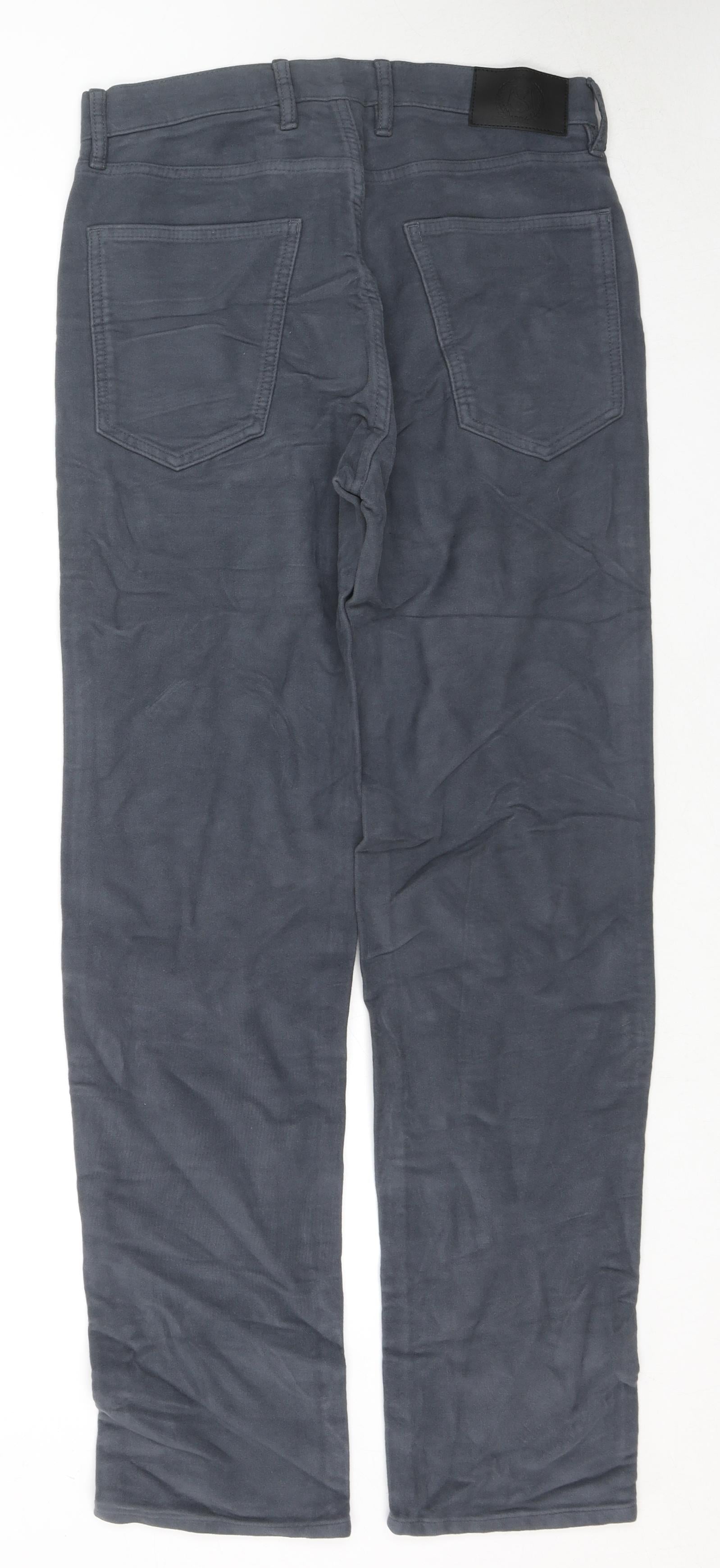 Marks and Spencer Mens Blue Cotton Trousers Size 30 in L33 in Regular Zip