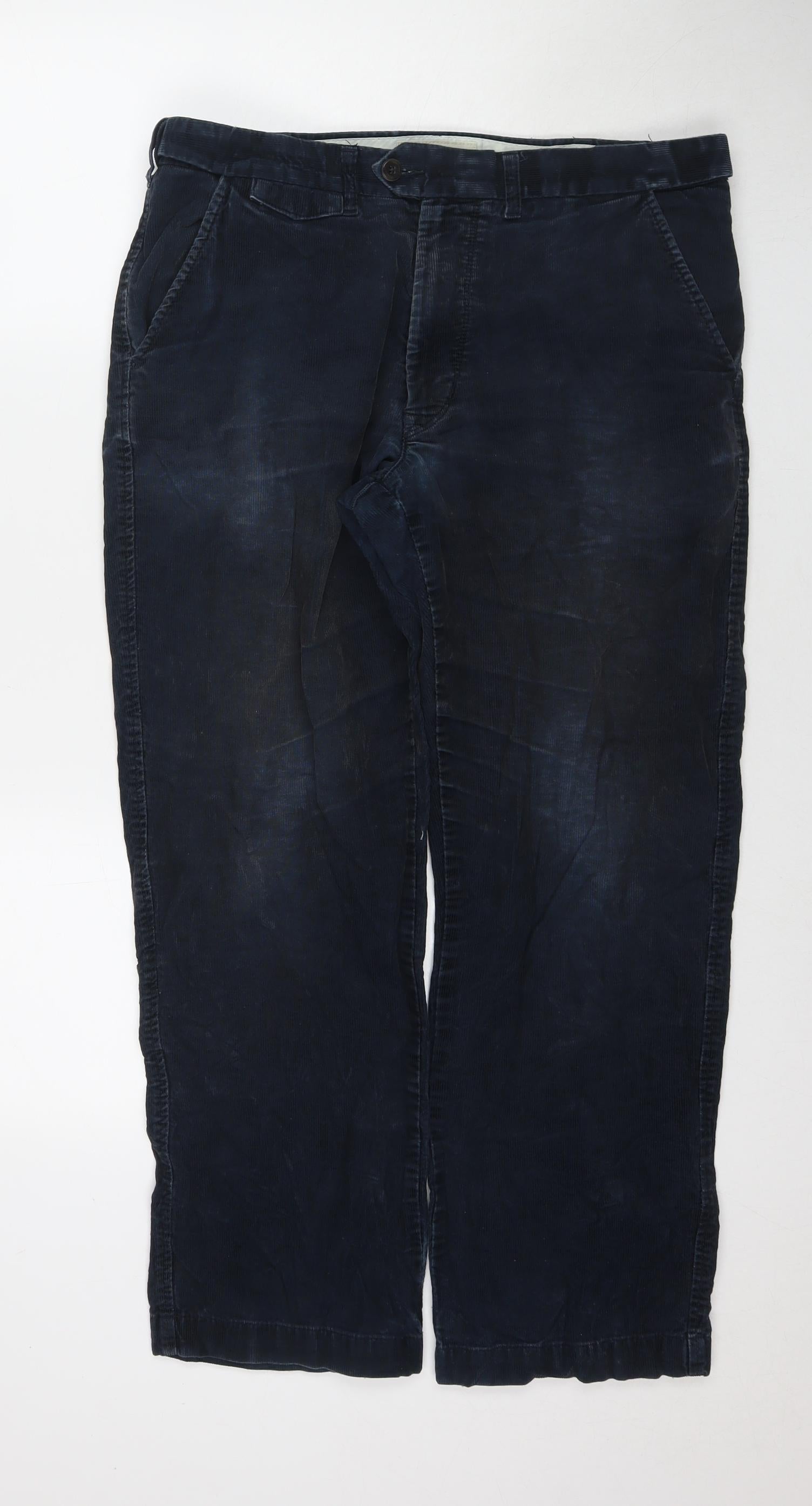 Marks and Spencer Mens Blue Cotton Trousers Size 34 in L29 in Regular Zip