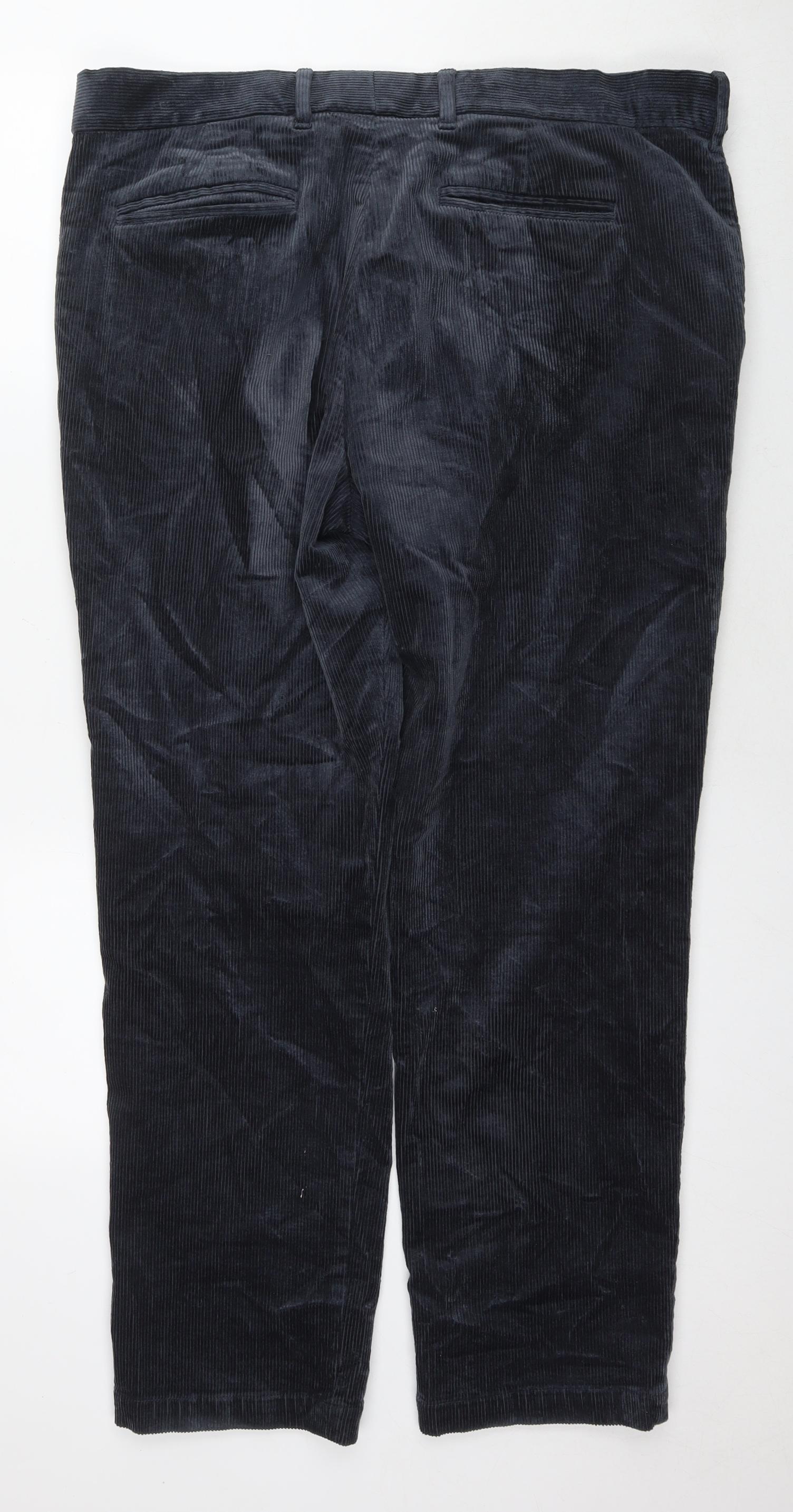 Marks and Spencer Mens Blue Cotton Trousers Size 38 in L31 in Regular Zip