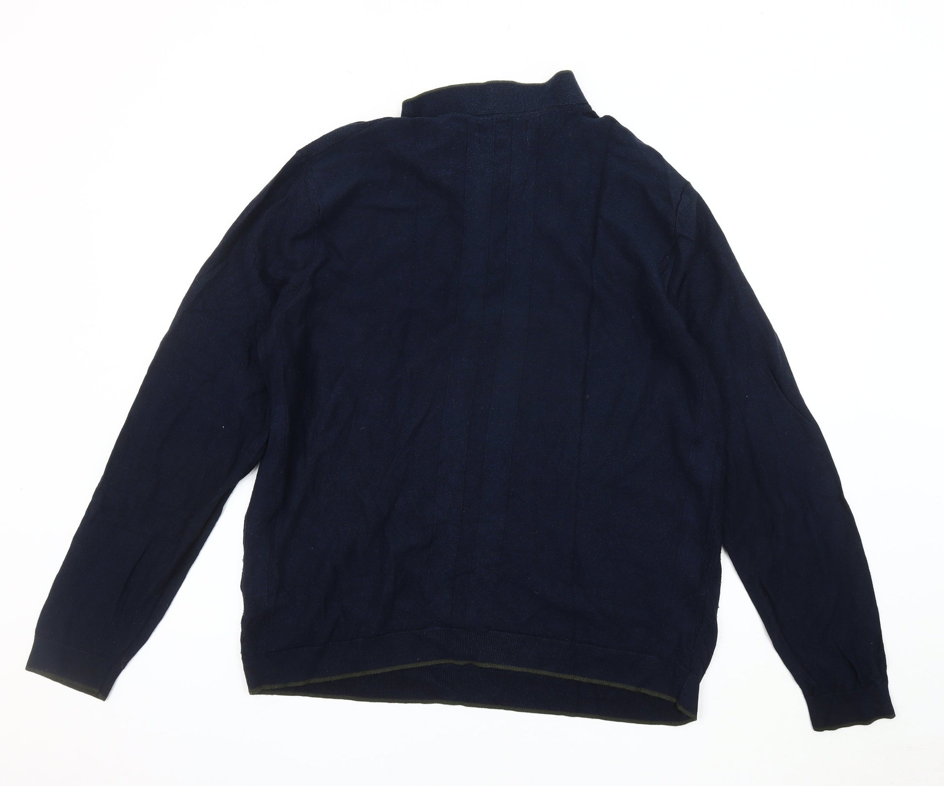 Marks and Spencer Men's Blue Full Zip Jumper - Size L