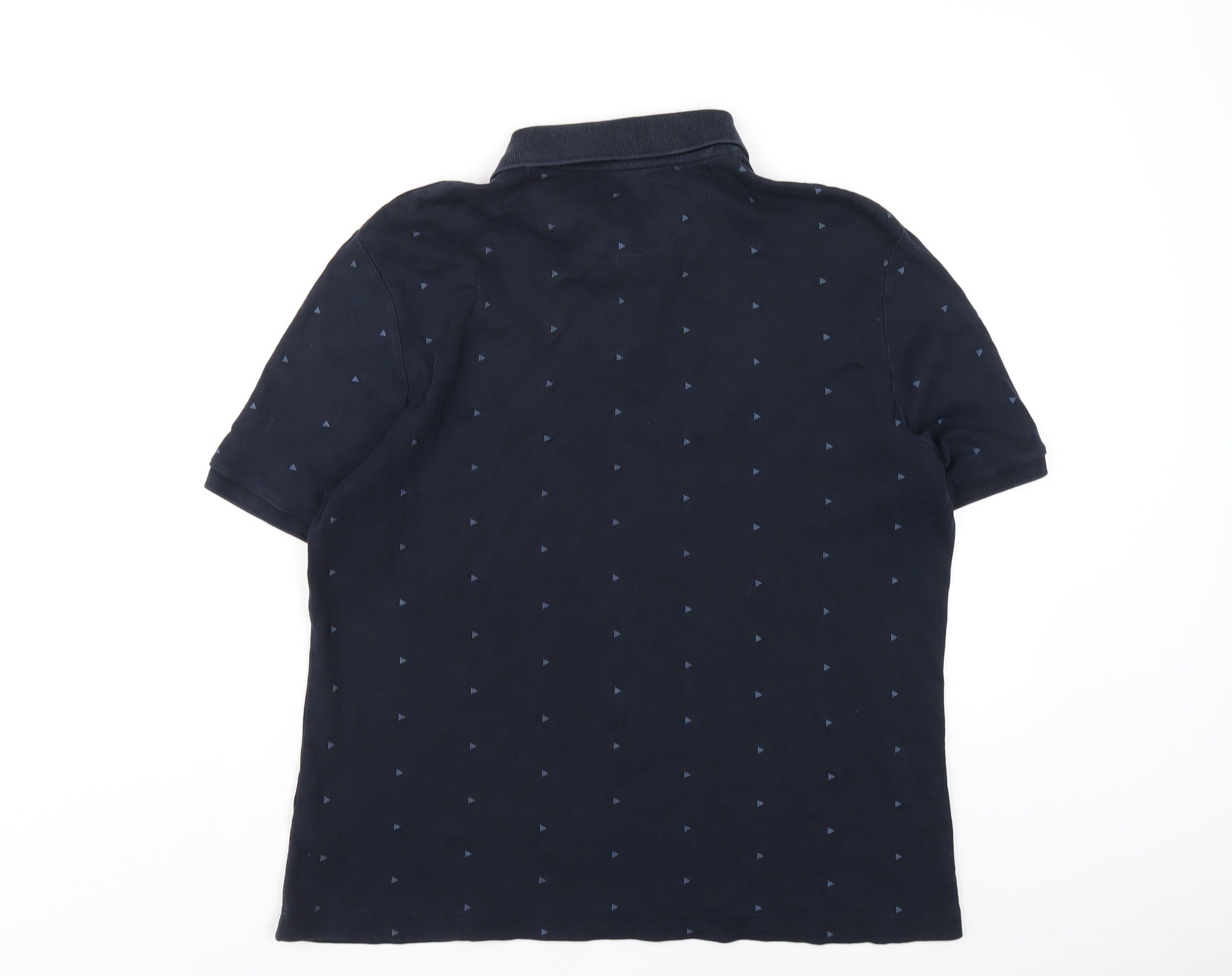 Marks and Spencer Mens Blue Geometric Cotton Polo Size L Collared Button