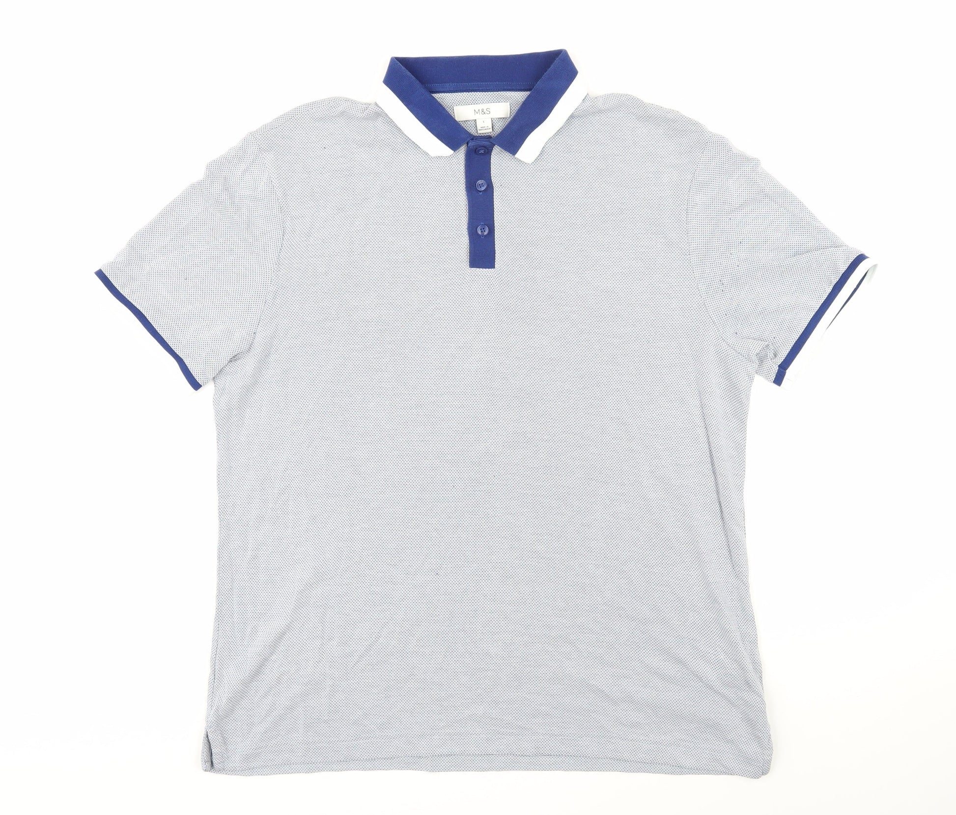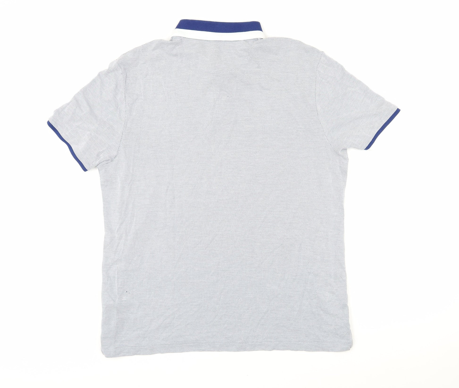 Marks and Spencer Mens Blue Geometric Modal Polo Size L Collared Button