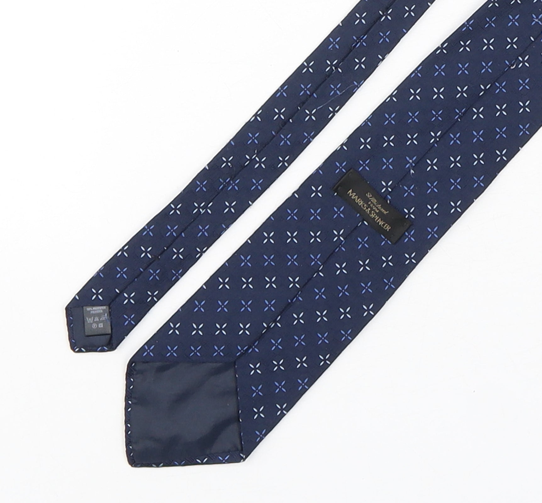 Marks and Spencer Mens Blue Geometric Polyester Pointed Tie One Size