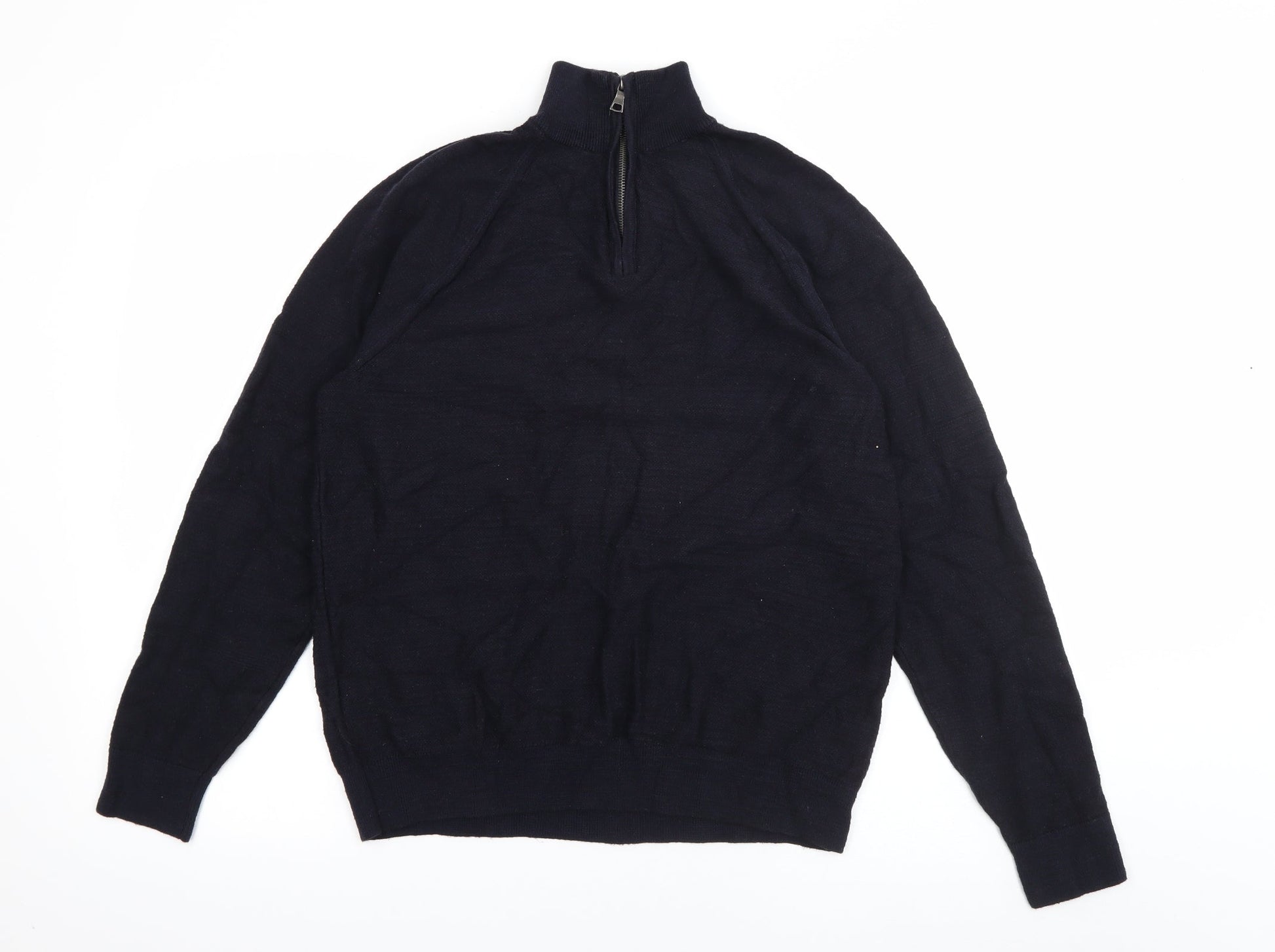 Marks and Spencer Mens Blue High Neck Cotton Pullover Jumper Size M