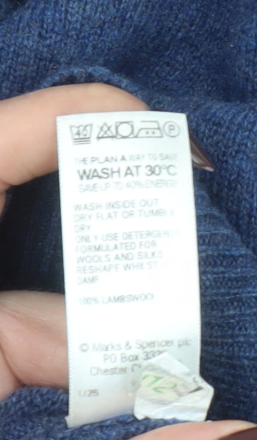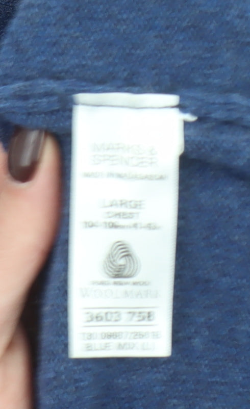 Marks and Spencer Mens Blue Lambswool V-Neck Jumper Size L