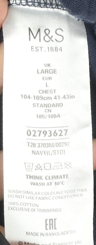 Marks and Spencer Men's Blue Long Sleeve Polo L