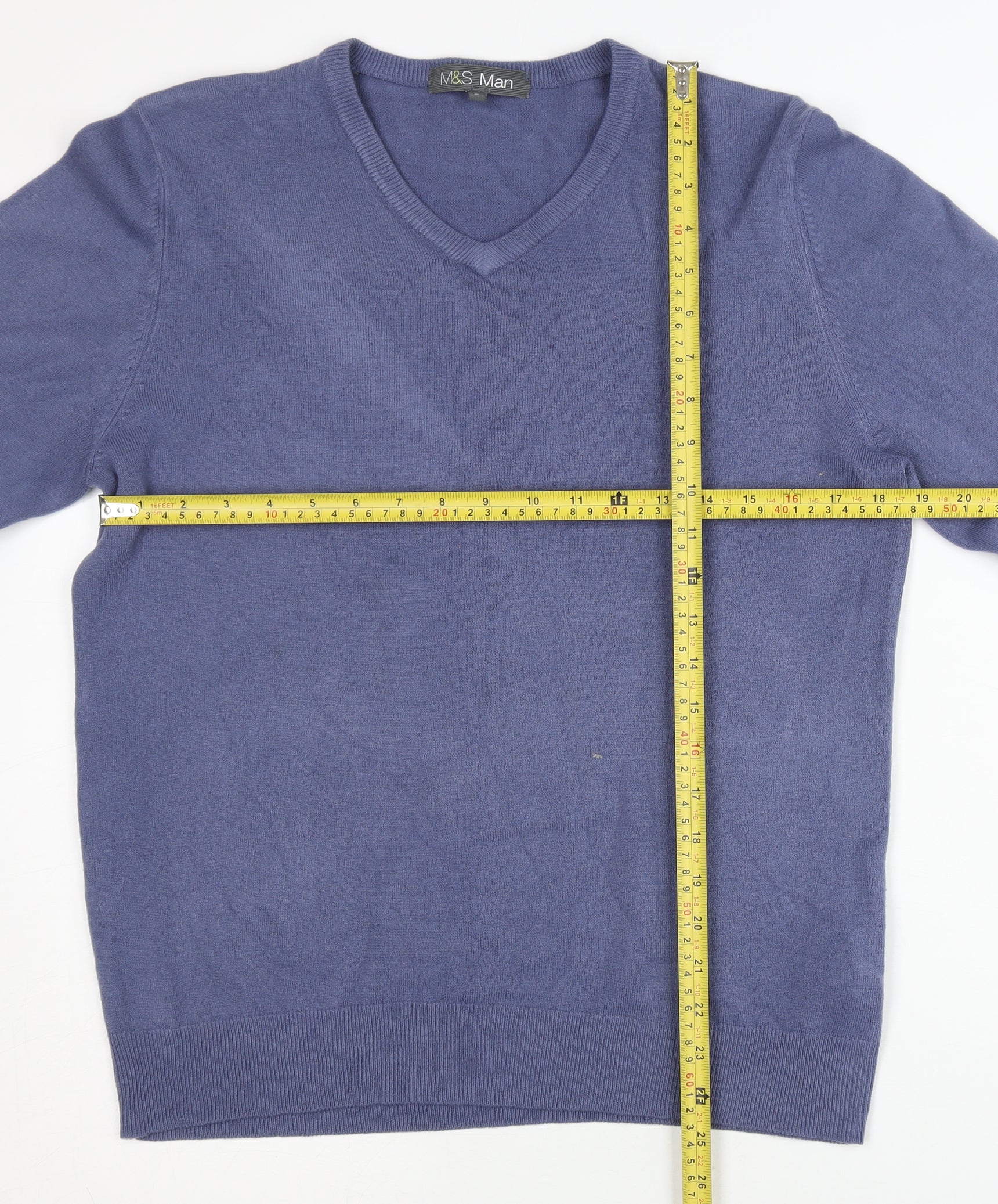 Marks and Spencer Men's Blue M V-Neck Acrylic Pullover Jumper