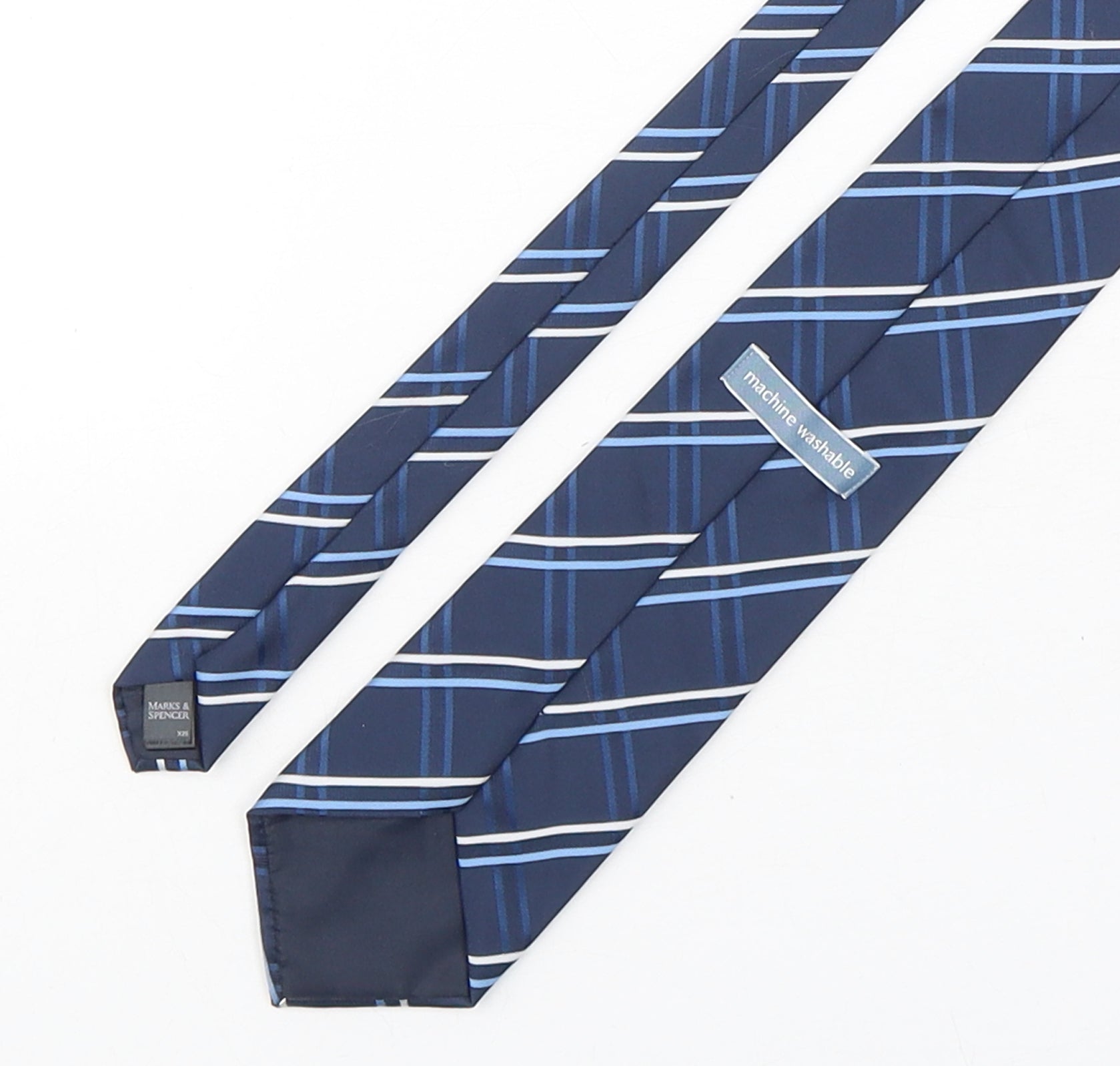 Marks and Spencer Mens Blue Plaids & Checks Polyester Pointed Tie One Size