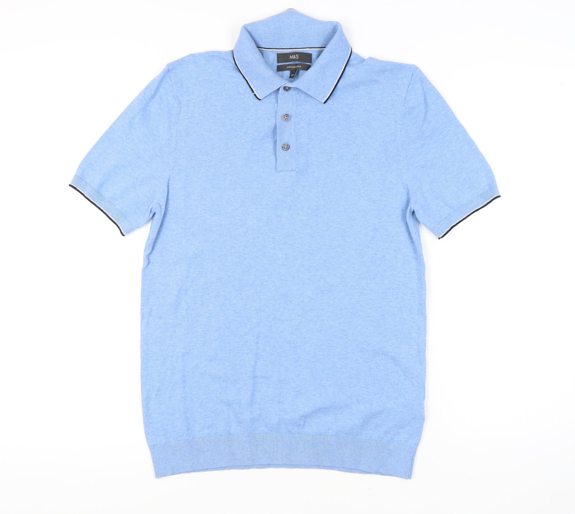 Marks and Spencer Men's Blue Polo Shirt, Size S, Short Sleeve