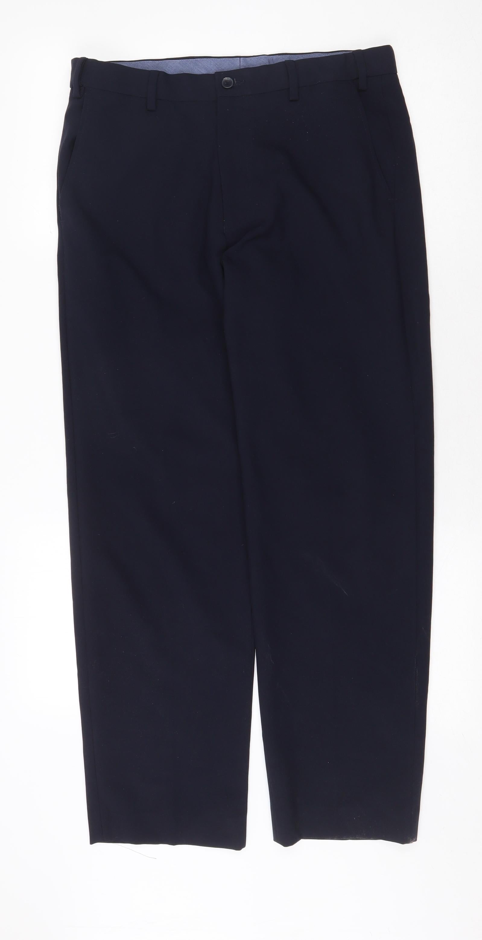 Marks and Spencer Mens Blue Polyester Dress Pants Trousers Size 32 in Regular Zip