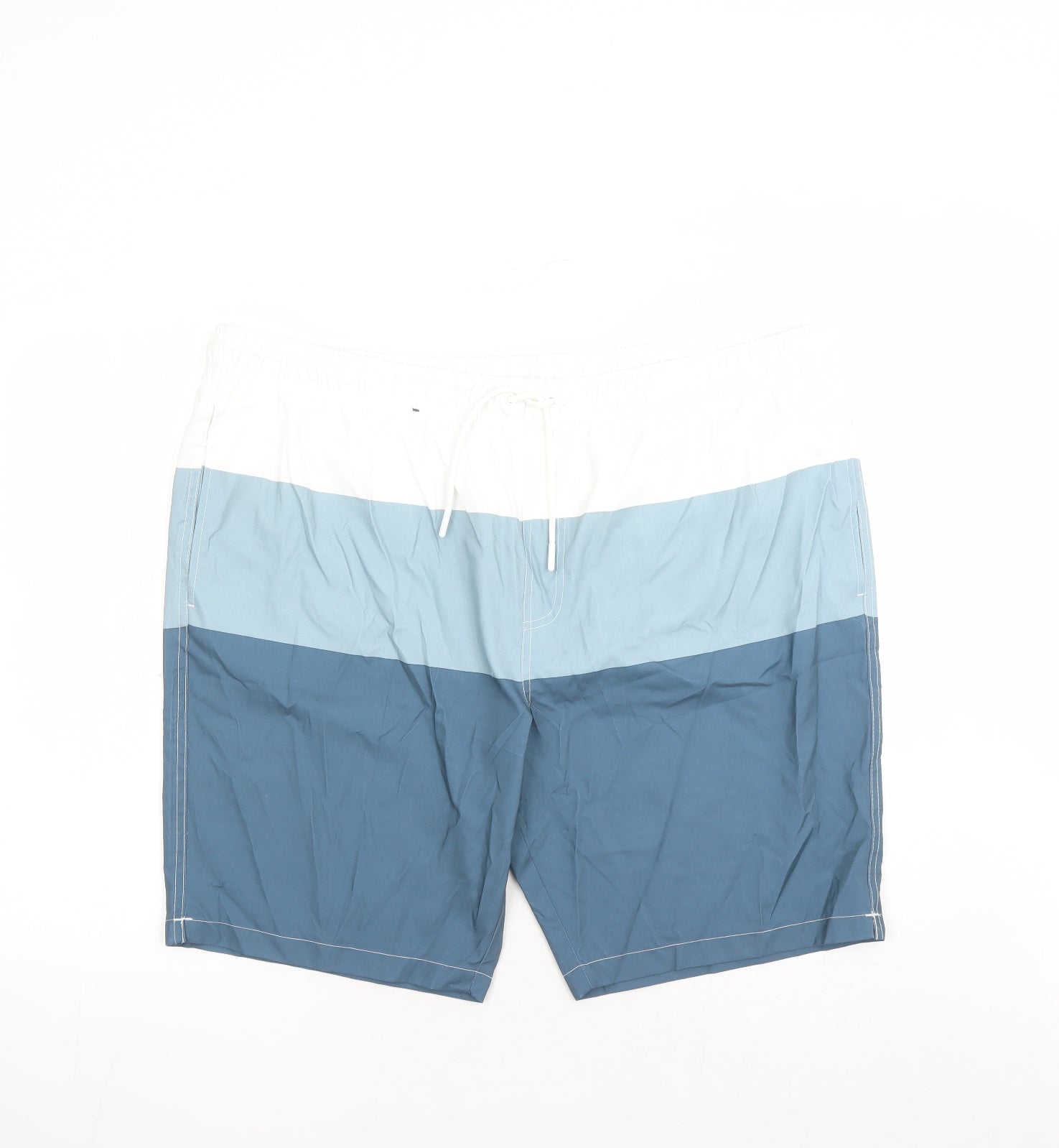 Marks and Spencer Mens Blue Polyester Sweat Shorts Size 3XL L6 in Regular Drawstring - Elasticated Waist Swim Shorts Pockets