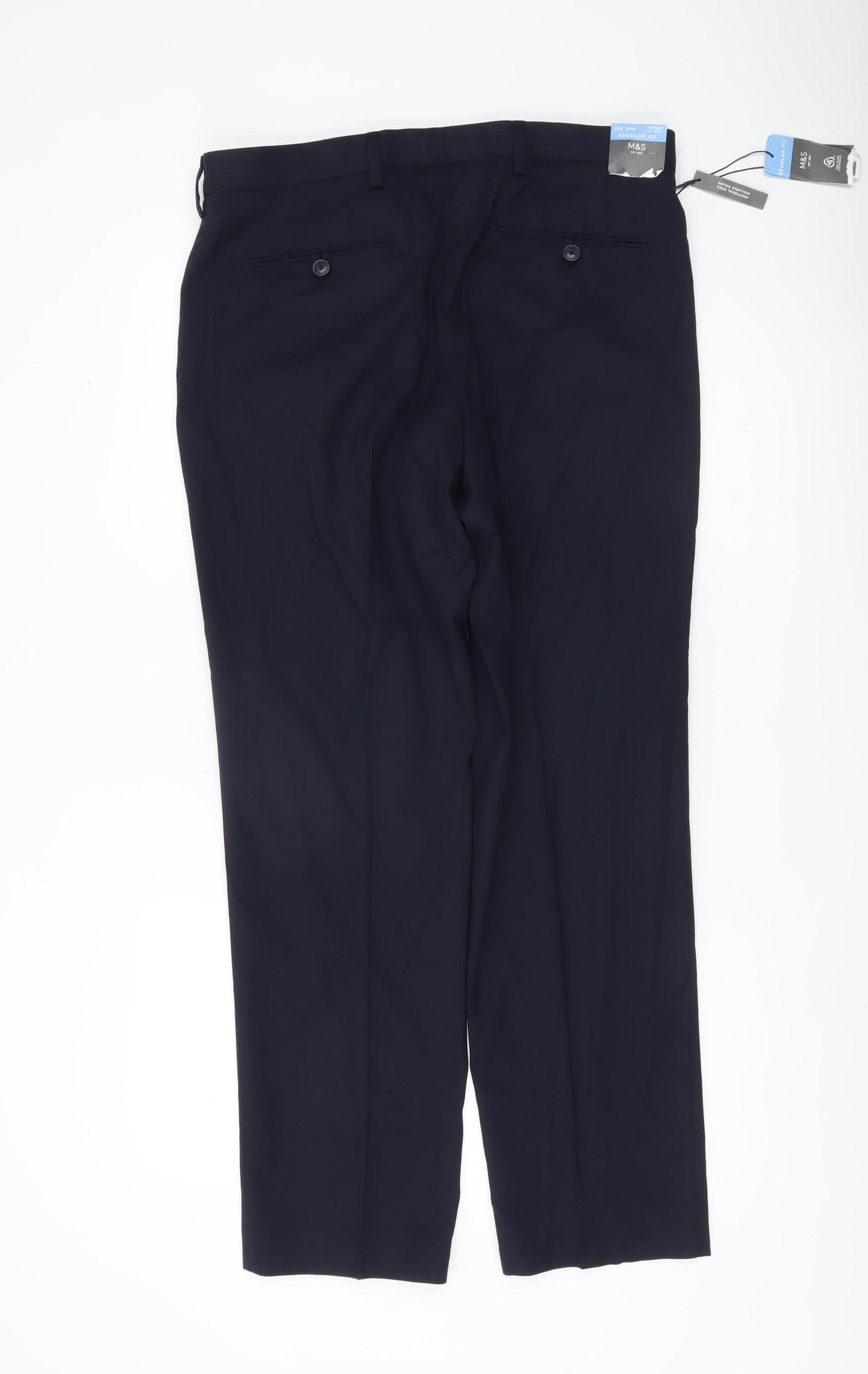 Marks and Spencer Men's Blue Regular Fit Dress Pants 34W 31L