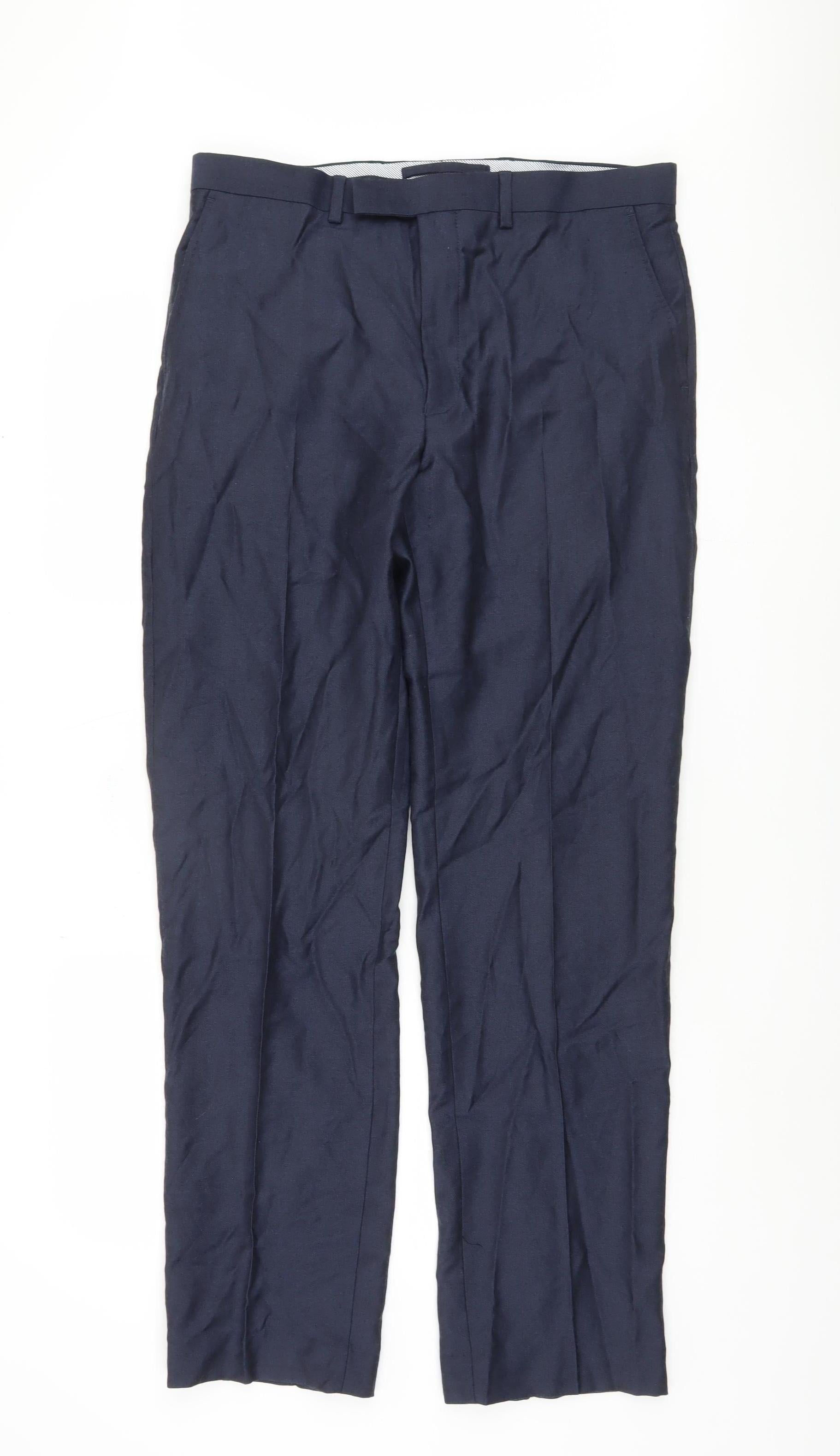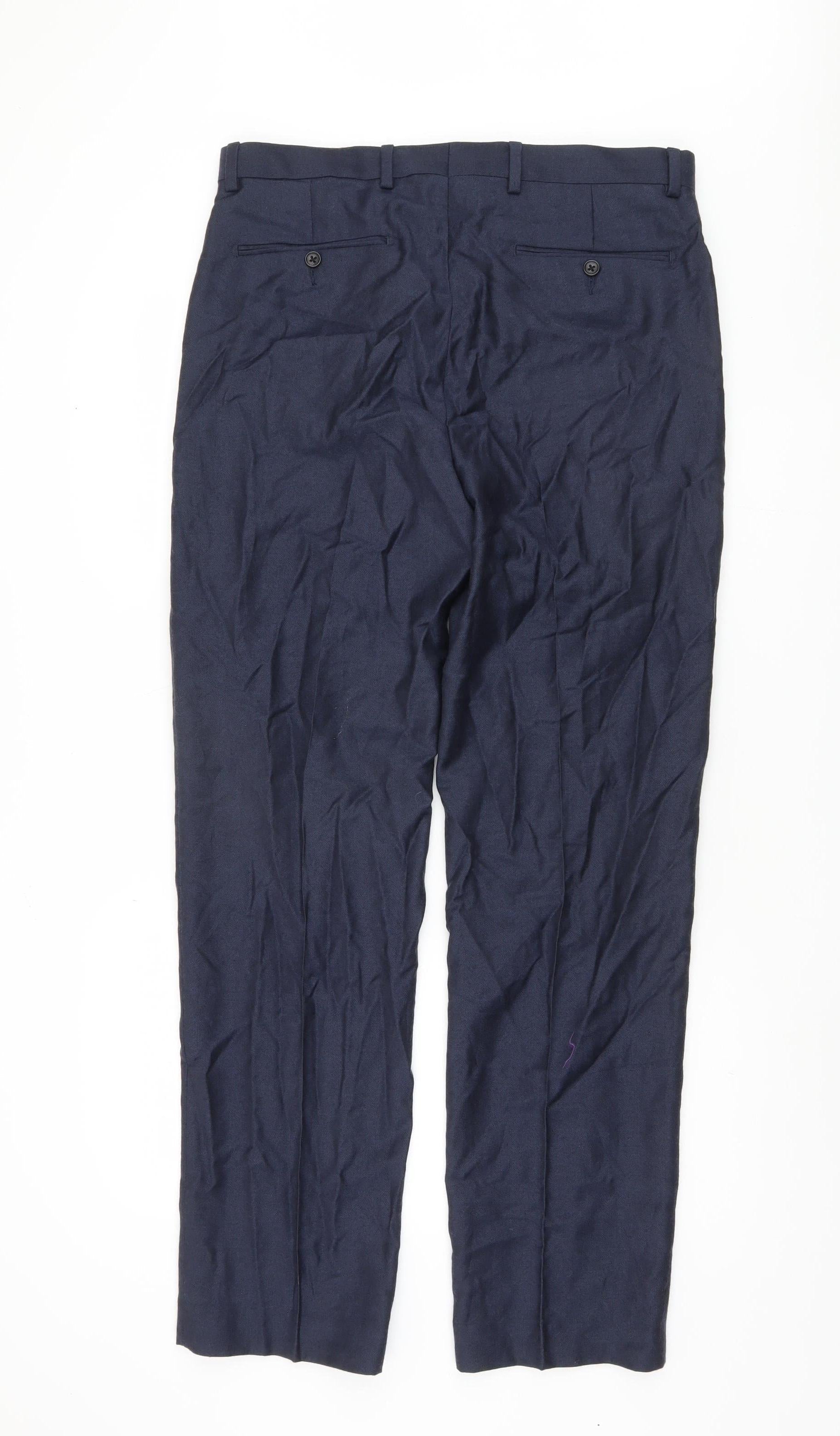 Marks and Spencer Men's Blue Regular Fit Wool Trousers
