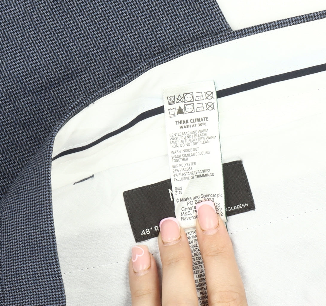 Marks and Spencer Men's Blue Regular Trousers, Size 48