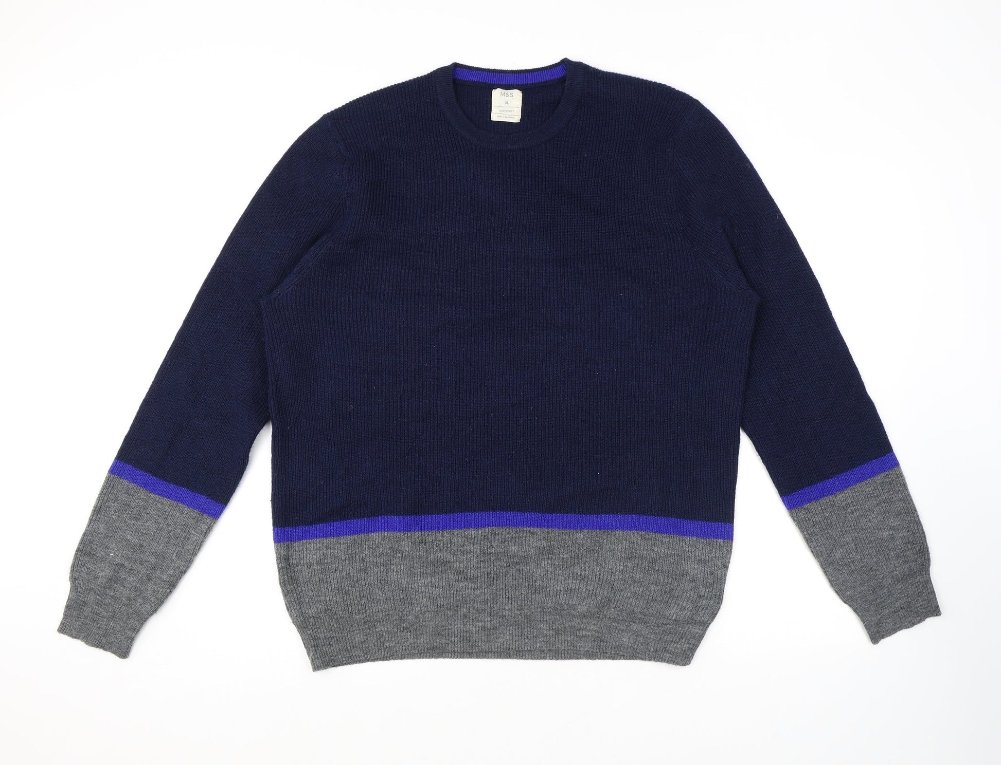 Marks and Spencer Mens Blue Round Neck Polyester Pullover Jumper Size XL Long Sleeve