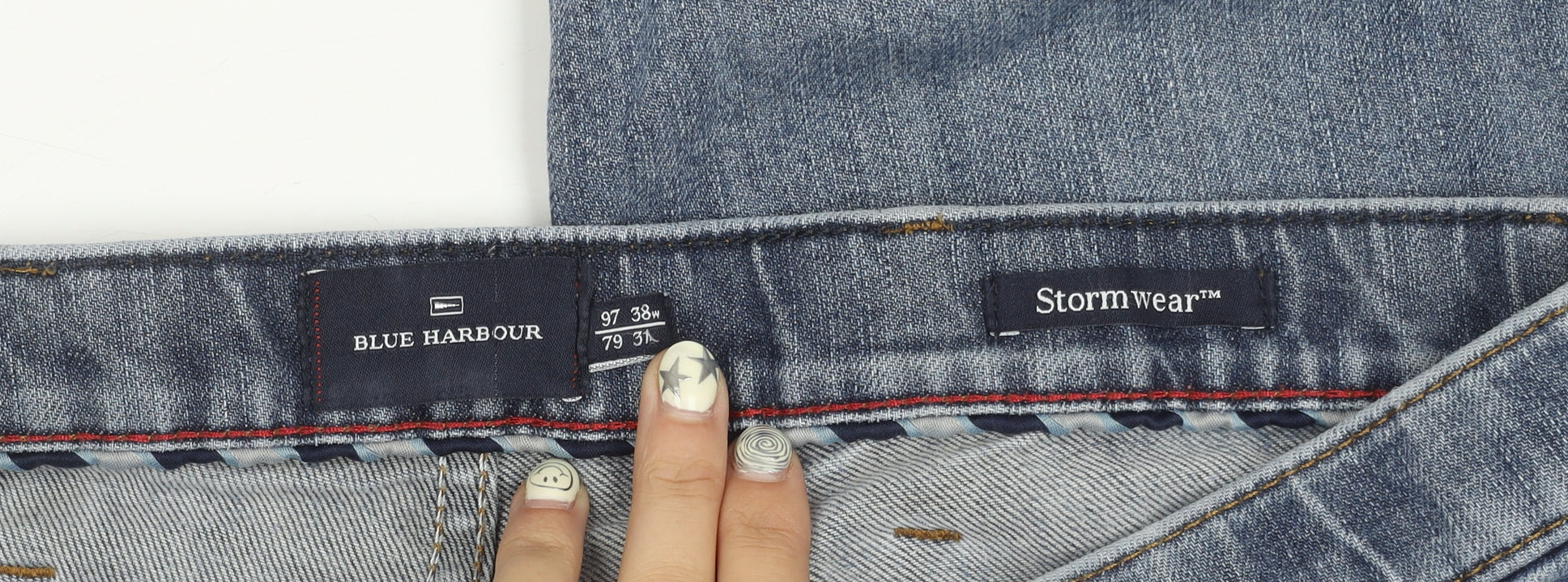 - Waist size: 38 in