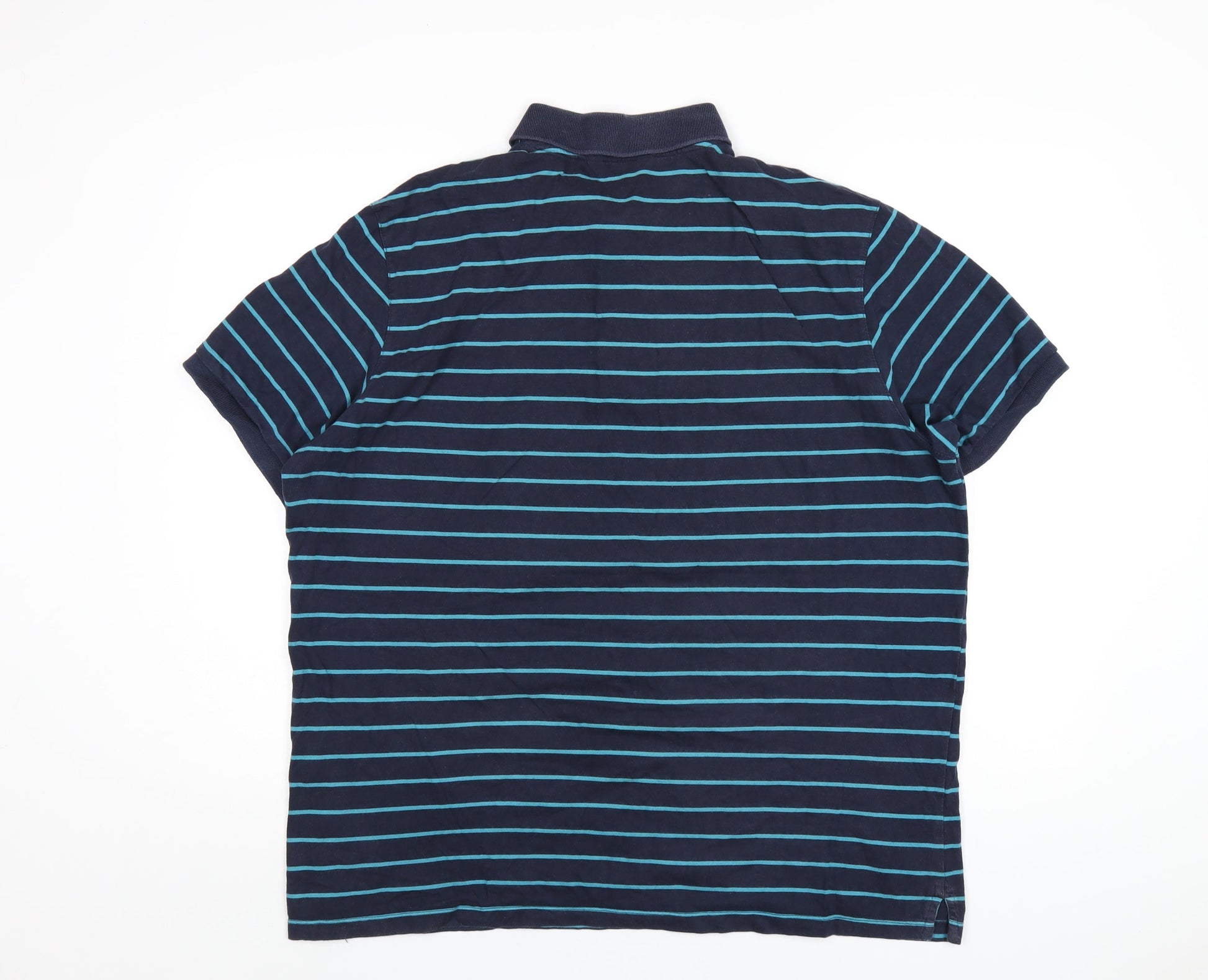 Marks and Spencer Mens Blue Striped Cotton Polo Size XL Collared Button