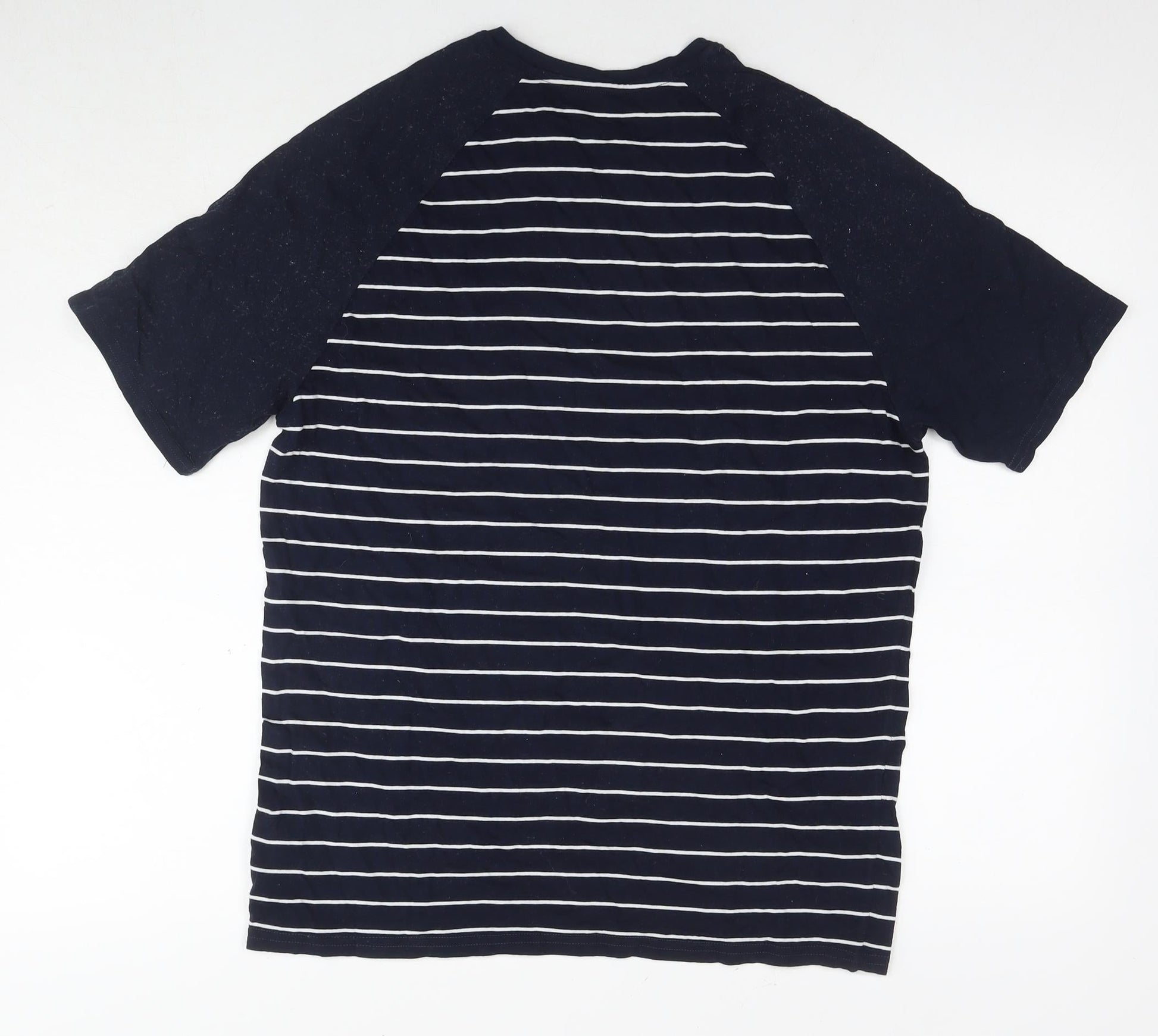 Marks and Spencer Mens Blue Striped Cotton T-Shirt Size M Round Neck