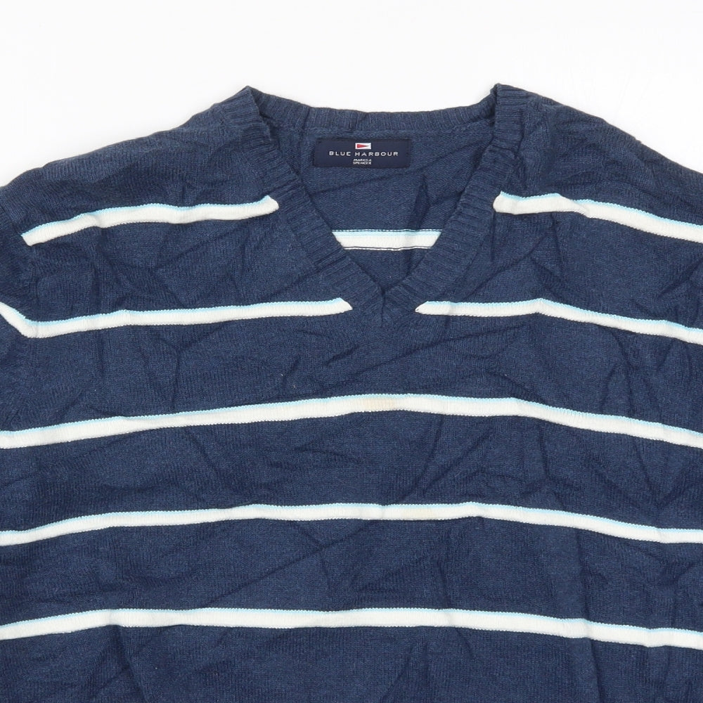 Marks and Spencer Mens Blue Striped Knit Pullover Jumper Size L