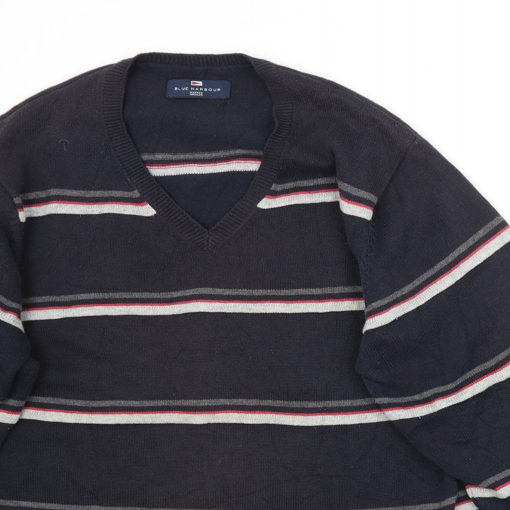 Marks and Spencer Mens Blue Striped Knit Pullover Jumper Size S