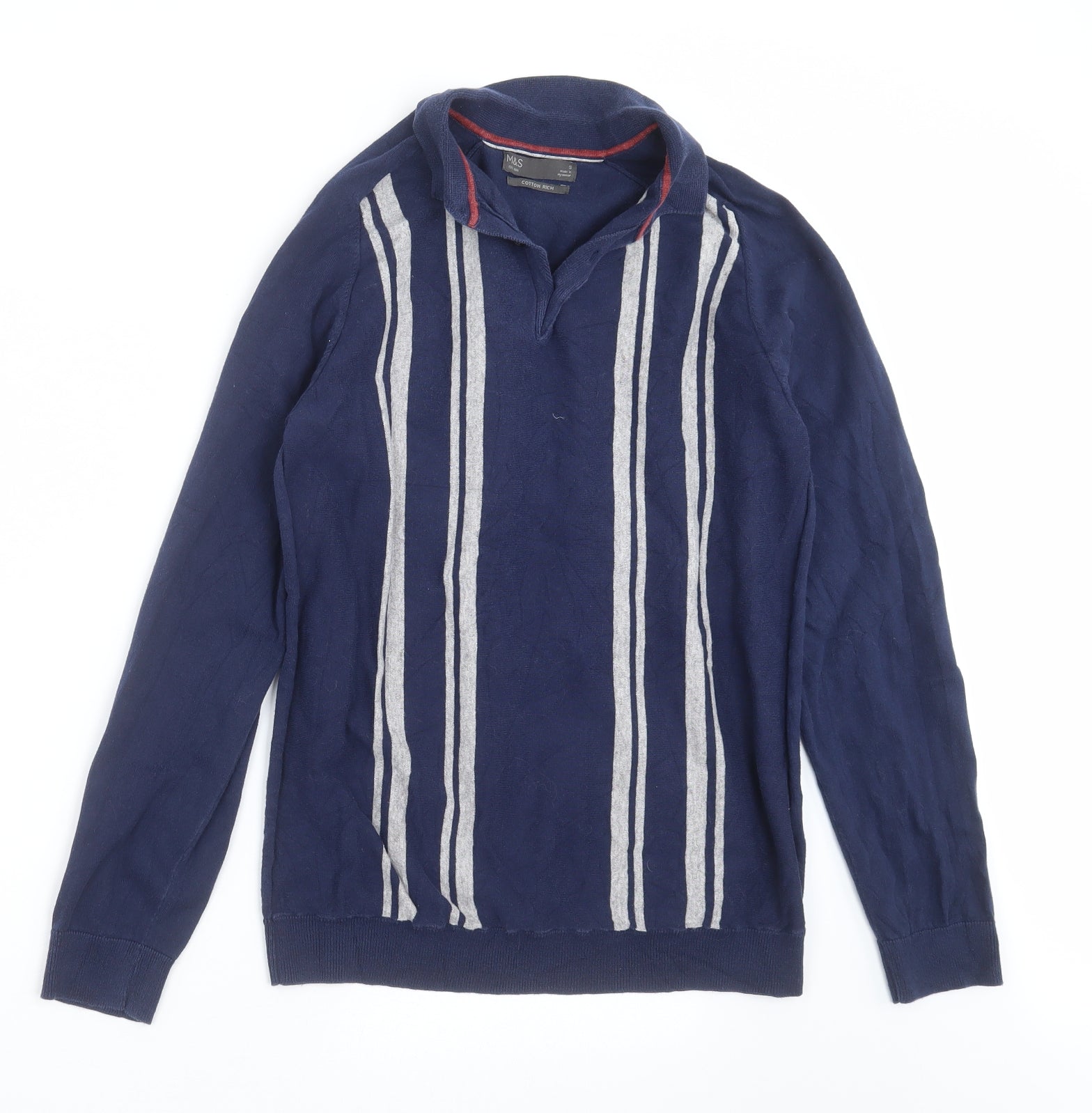 Marks and Spencer Mens Blue Striped Knit Pullover Jumper Size S