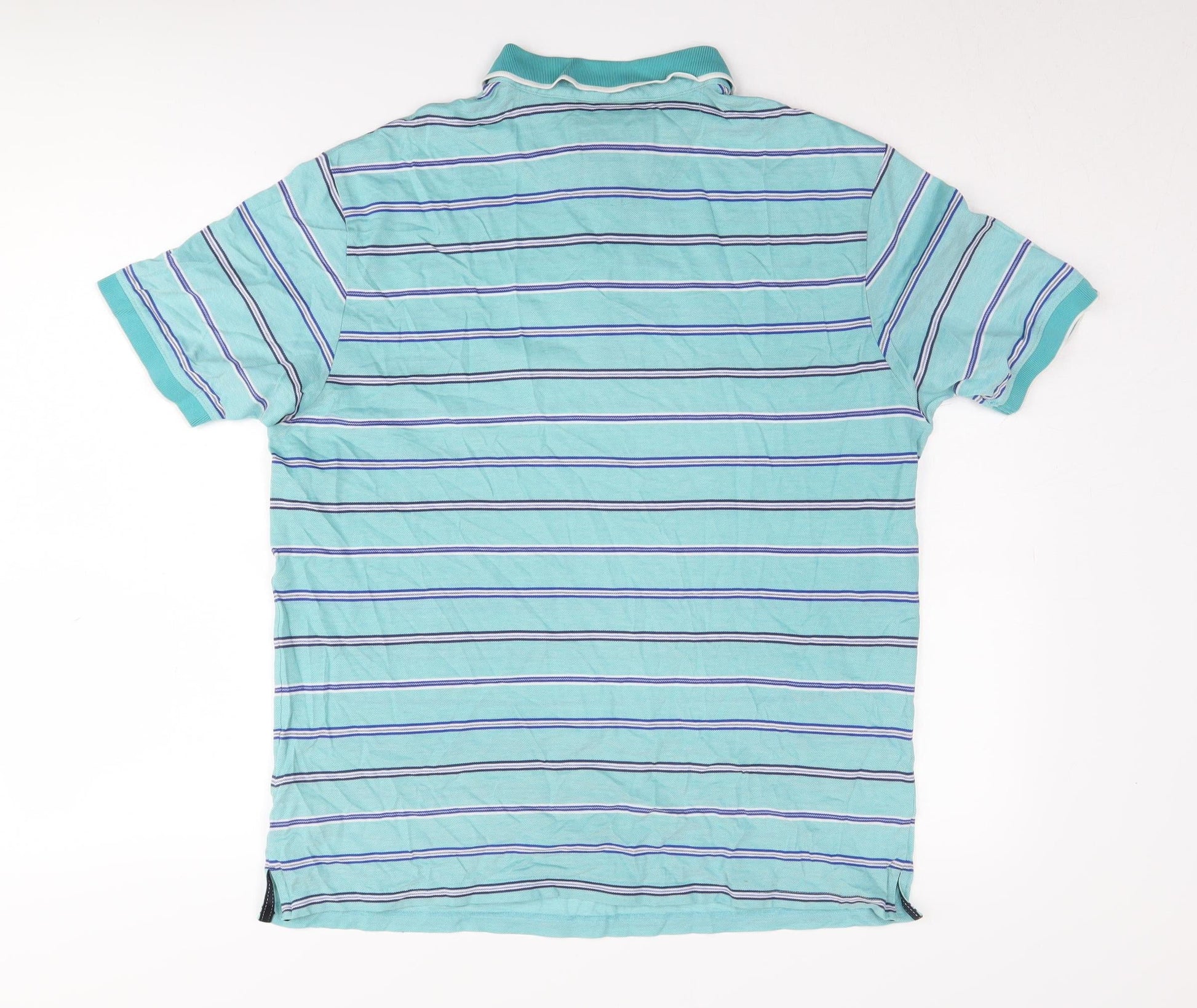 Marks and Spencer Men's Blue Striped Polo Shirt M