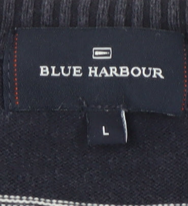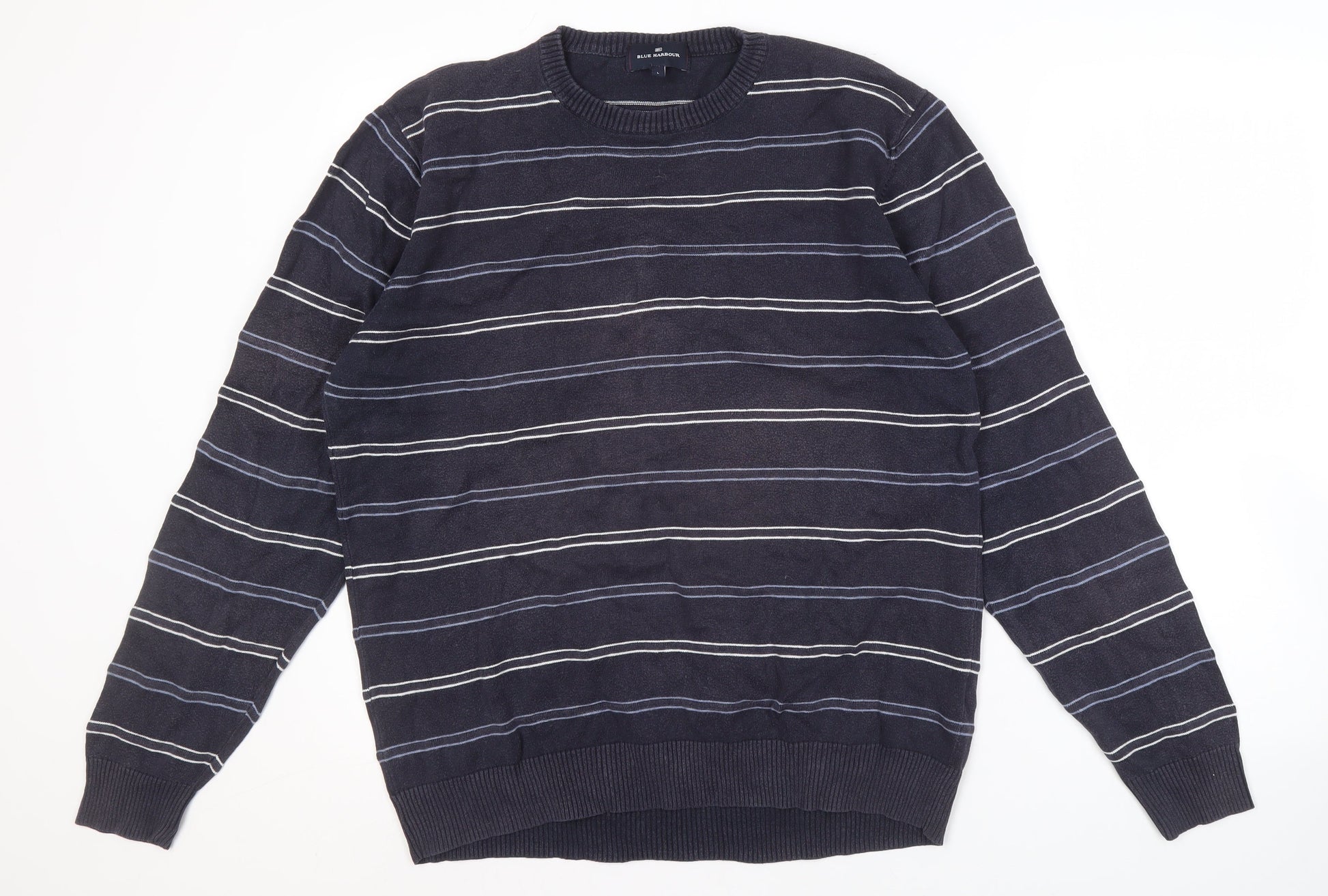 Marks and Spencer Men's Blue Striped Pullover Jumper L