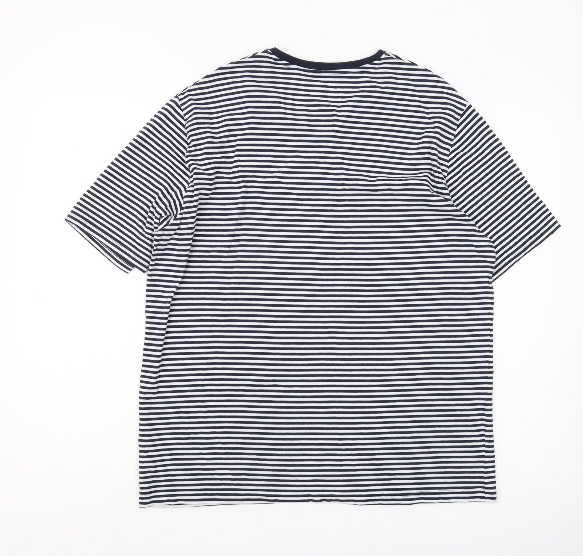 Marks and Spencer Men's Blue Striped T-Shirt M