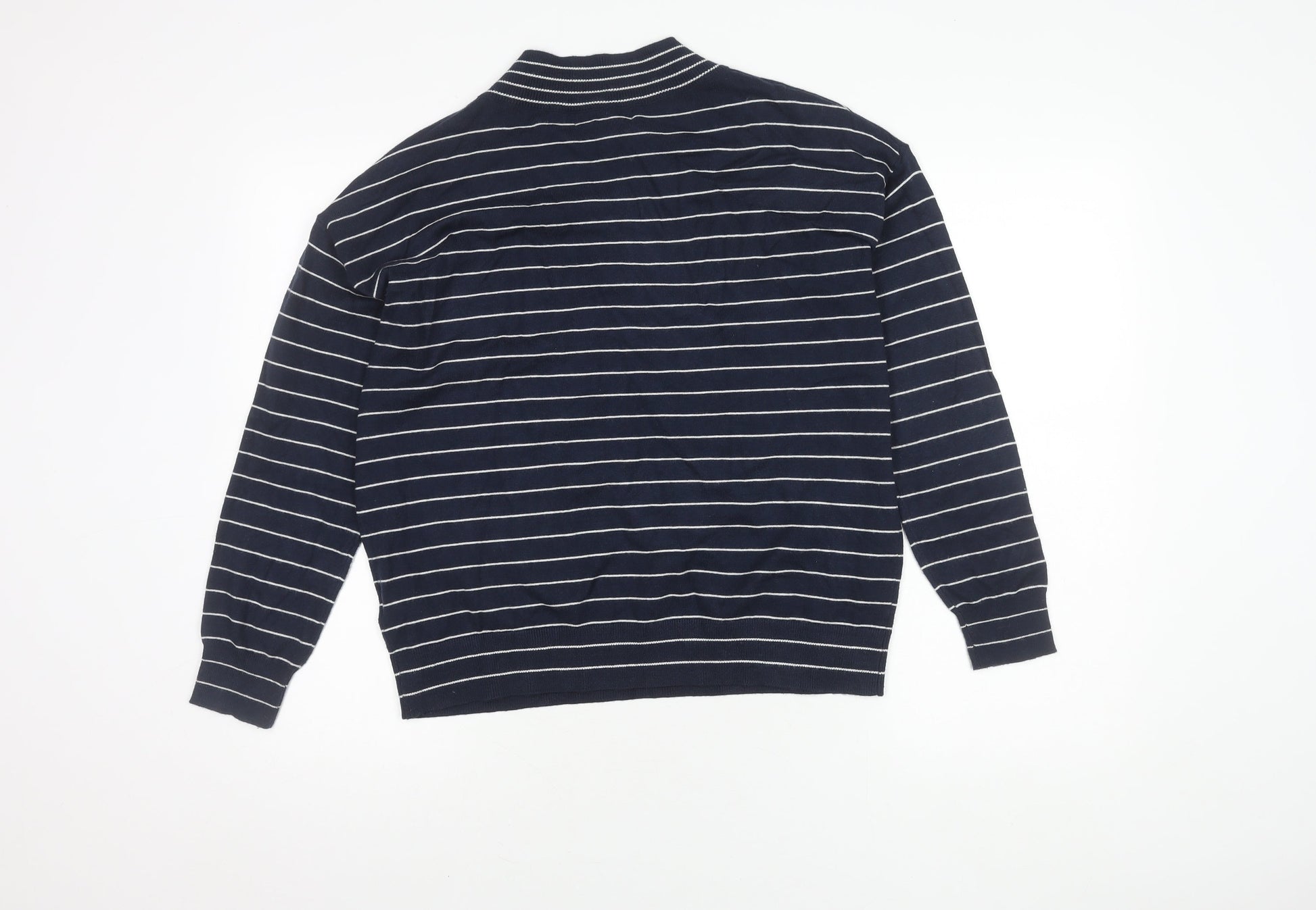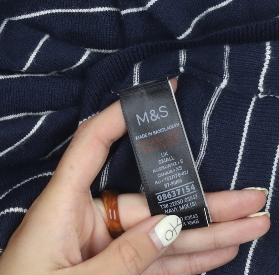 Marks and Spencer Men's Blue Striped V-Neck Jumper - S
