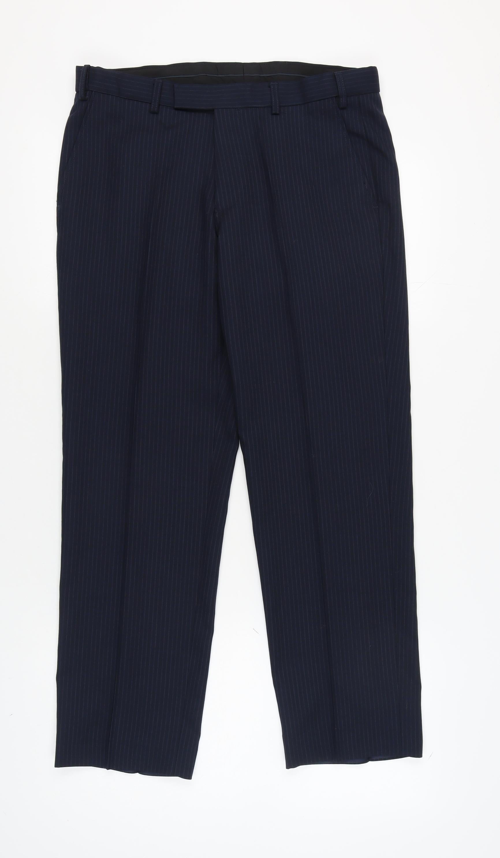 Marks and Spencer Men's Blue Trousers, 34/29, Wool Blend