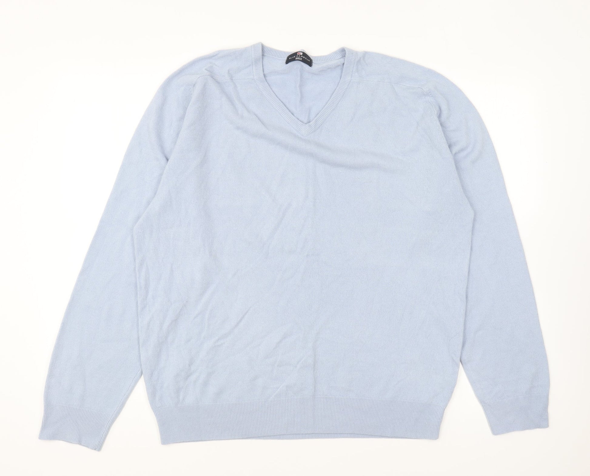 Marks and Spencer Mens Blue V-Neck Acrylic Pullover Jumper Size L